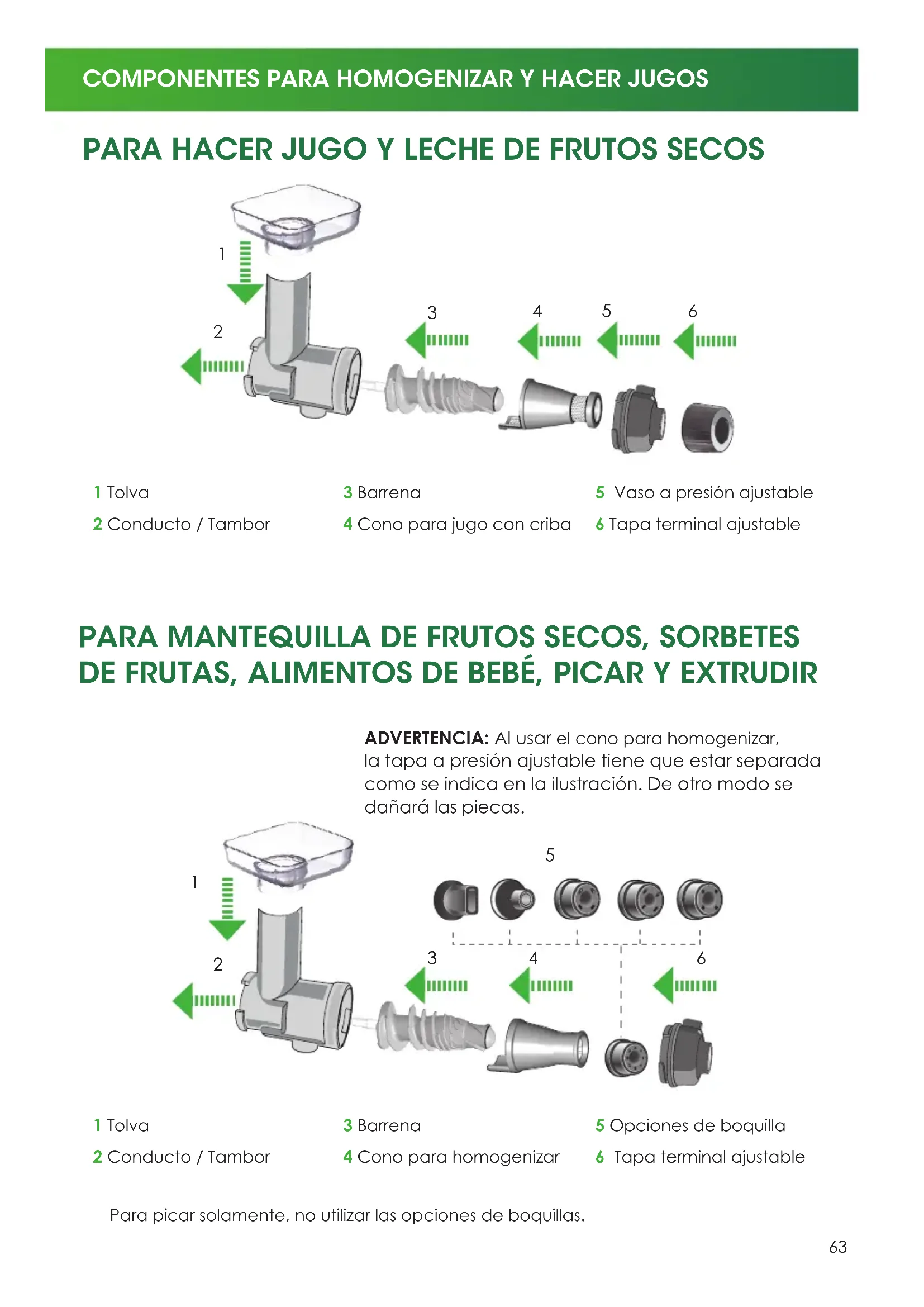 62 - 63 Componentes para homogenizar y hacer jugo