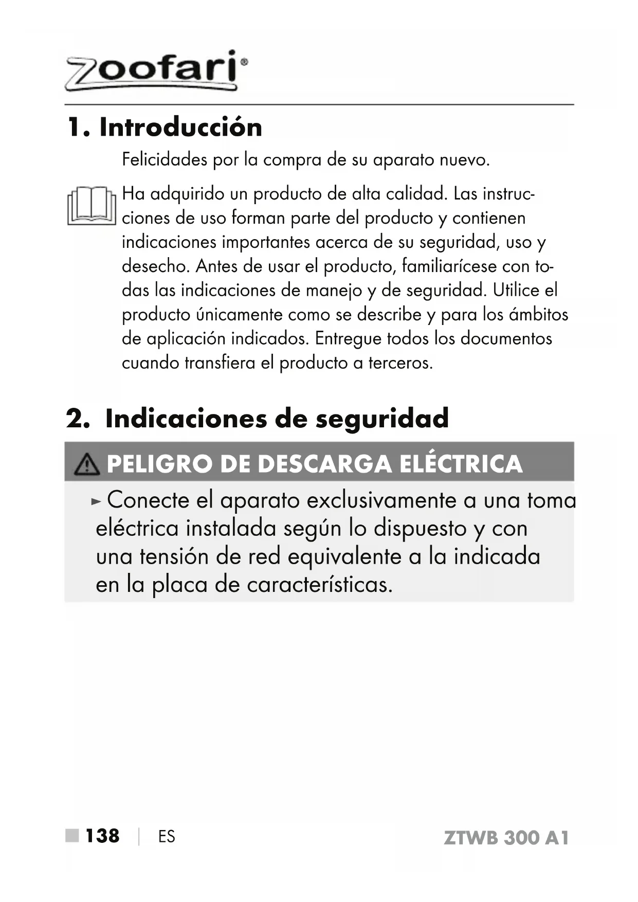 Encuentra gratis el manual del aparato ZTWB 300 A1 ZOOFARI en formato PDF.