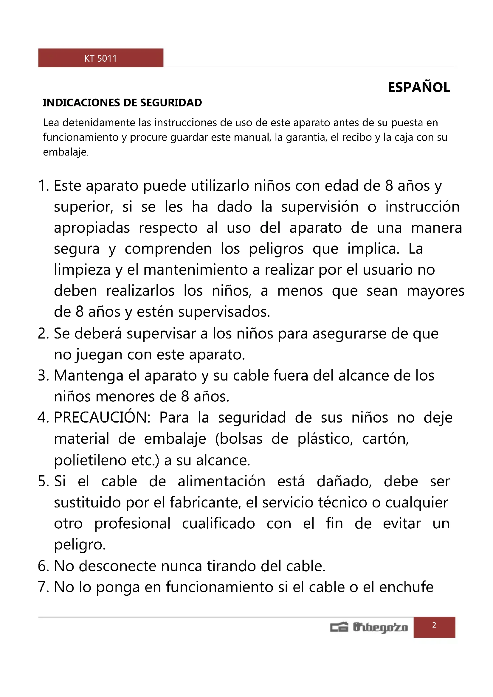 MANUAL DE USUARIO KT 5011 Orbegozo