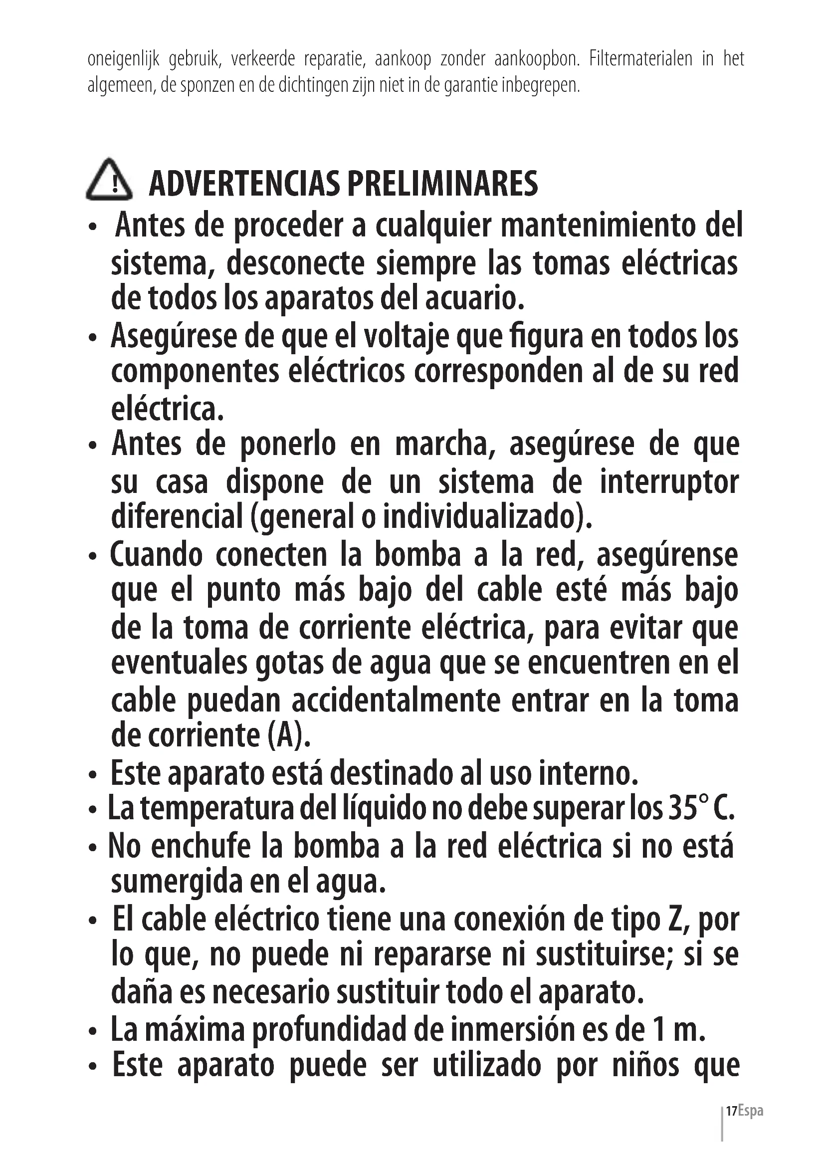 - No enchufe la bomba a la red eléctrica si no está sumergida en el agua.