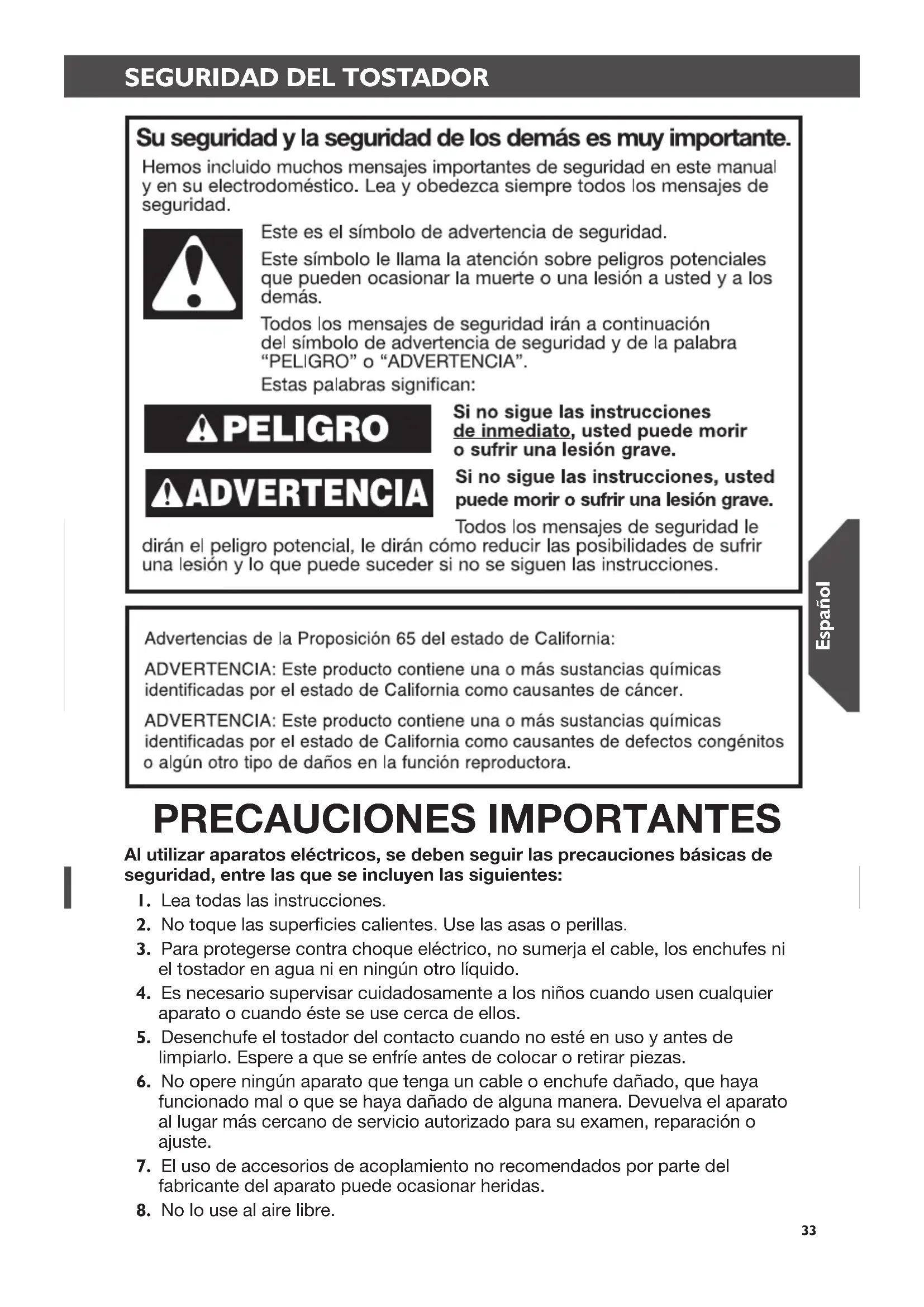 INSTRUCCIONES DEL TOSTADOR SEGURIDAD DEL TOSTADOR