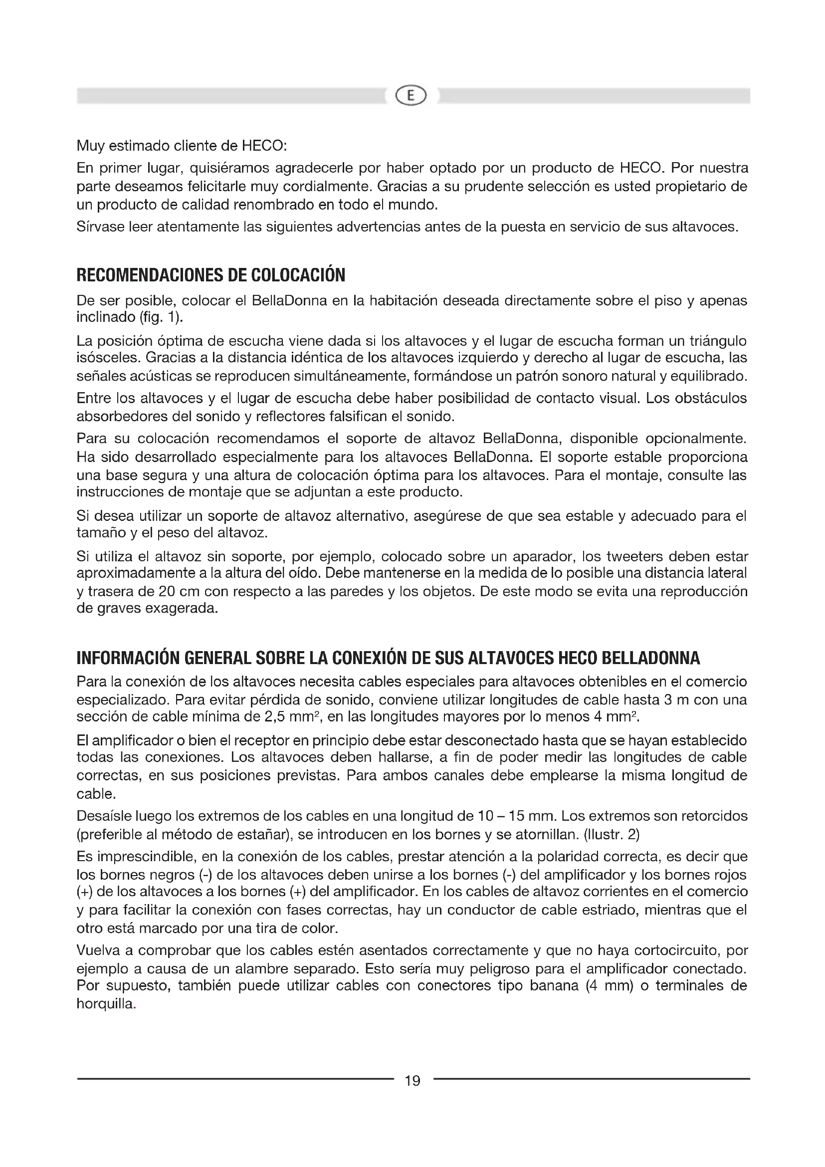 Muy estimado cliente de HECO: En primer lugar, quisiéramos agradecerle por haber optado por un producto de HECO. Por nuestra parte deseamos felicitarle muy cordialmente. Gracias a su prudente selección es usted propietario de un producto de calidad renombrado en todo el mundo. Sírvase leer atentamente las siguientes advertencias antes de la puesta en servicio de sus altavoces.