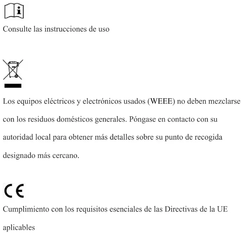 Los equipos eléctricos y electrónicos usados (WEEE) no deben mezclarse con los residuos domésticos generales. Póngase en contacto con su autoridad local para obtener más detalles sobre su punto de recogida designado más cercano.