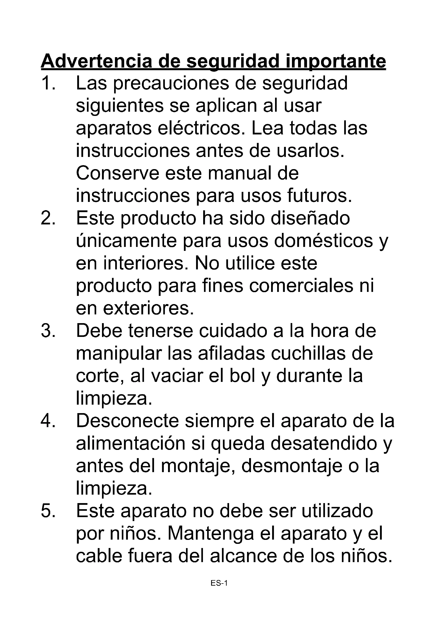 Este aparato no debe ser utilizado por niños. Mantenga el aparato y el cable fuera del alcance de los niños.ES-2