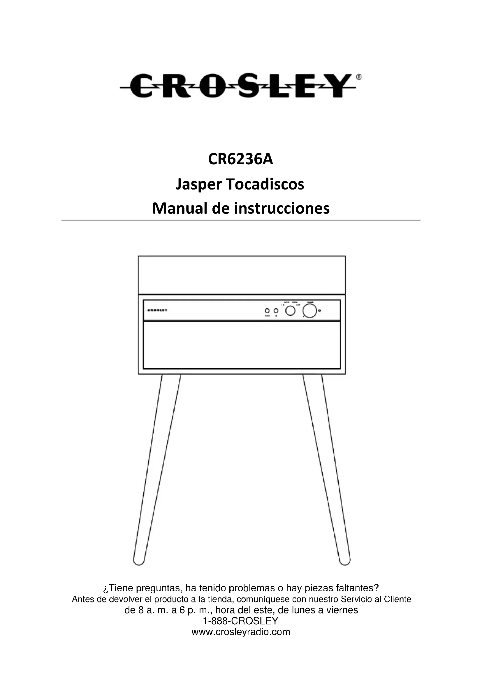 ¿Tiene preguntas, ha tenido problemas o hay piezas faltantes? Antes de devolver el producto a la tienda, comuníquese con nuestro Servicio al Cliente de 8 a. m. a 6 p. m., hora del este, de lunes a viernes 1-888-CROSLEY www.crosleyradio.comEspañol