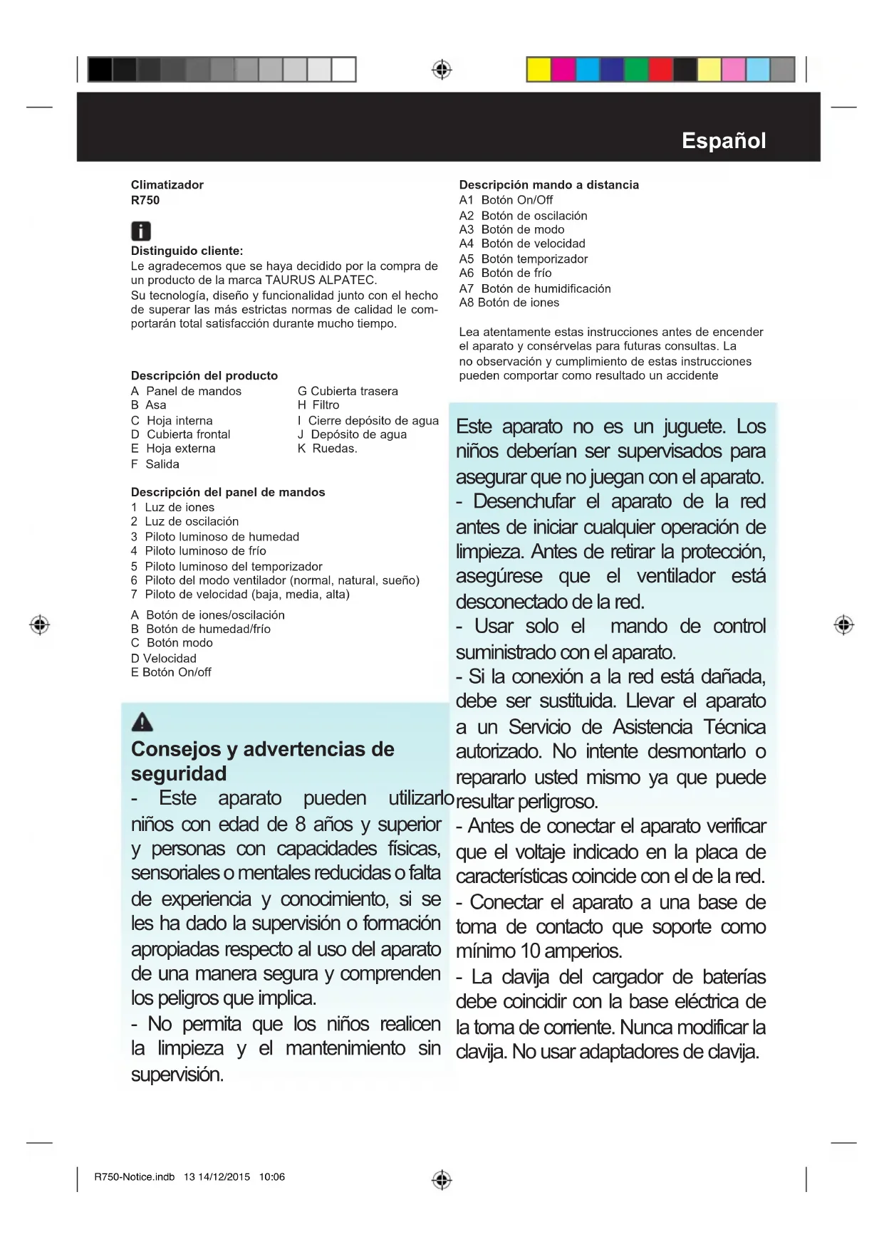 Descarga las instrucciones para tu Admirador en formato PDF gratis! Encuentra tus instrucciones R750 - TAURUS y toma tu dispositivo electrónico nuevamente en la mano. En esta página están publicados todos los documentos necesarios para el uso de su dispositivo. R750 de la marca TAURUS.