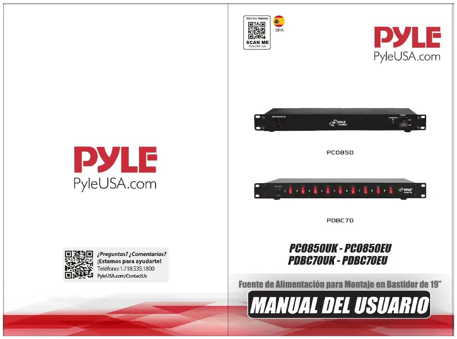 PDBC70UK - PDBC70EUINTRODUCTION: Felicitaciones por comprar el acondicionador de fuente de alimentación de montaje en rack de 1 U serie PYLE. Los acondicionadores de fuente de alimentación tienen una excelente función de protección contra sobretensiones para todos sus sistemas y suministran múltiples salidas para su equipo de alimentación. No solo protege todo lo que esté conectado a ellos contra picos y sobretensiones, sino que también tiene un ltro de ruido de CA incorporado para eliminar del sistema las interferencias electromagnéticas y de radiofrecuencia. Y esto permite que todos sus equipos funcionen mejor y duren más. INFORMACIÓN DE SEGURIDAD: PARA OBTENER LOS MEJORES RESULTADOS DE NUESTRA UNIDAD DE ACONDICIONADOR DE FUENTE DE ALIMENTACIÓN, POR FAVOR LEA ATENTA- MENTE EL MANUAL ANTES DE UTILIZARLO. ADVERTENCIAS: Para reducir el riesgo de descarga eléctrica, no exponga este equipo a la lluvia ni a la humedad. En el interior de la carcasa hay alta tensión potencialmente peligrosa. No retire las cubiertas. Encargue el mantenimiento únicamente al personal cualicado. PRECAUCIÓN: Este equipo debe conectarse a un receptáculo nominal de 20 amperios del circuito derivado. La corriente total extraída de los receptáculos de este equipo es de máximo 15 amperios y ningún receptáculo individual debe extraer más de 12 amperios. IMPORTANTES DIRECTRICES DE SEGURIDAD: Por favor preste mucha atención a las instrucciones de funcionamiento y mantenimiento de este manual.