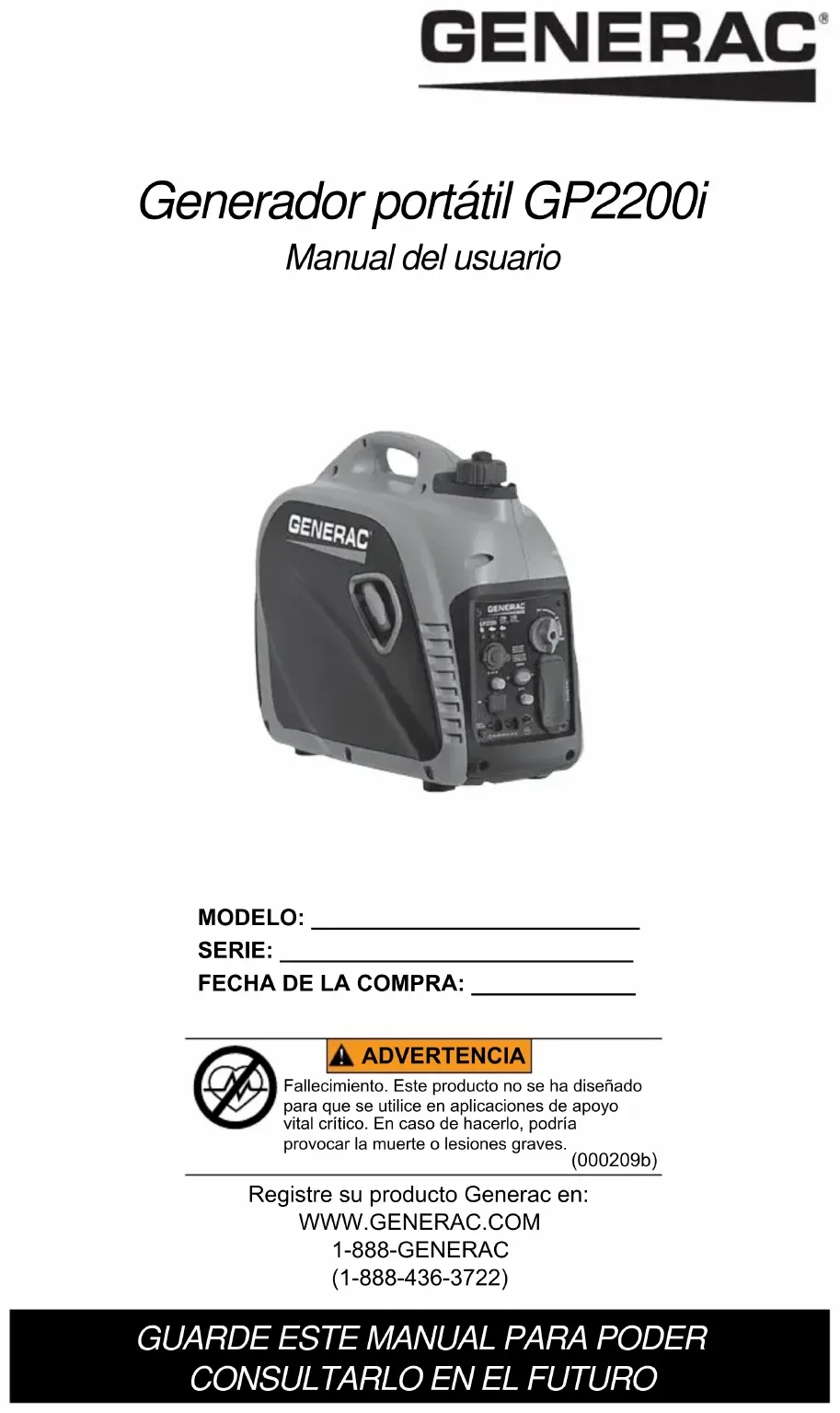 GP2200i - Generador Generac - Manual de uso y guía de instrucciones gratis