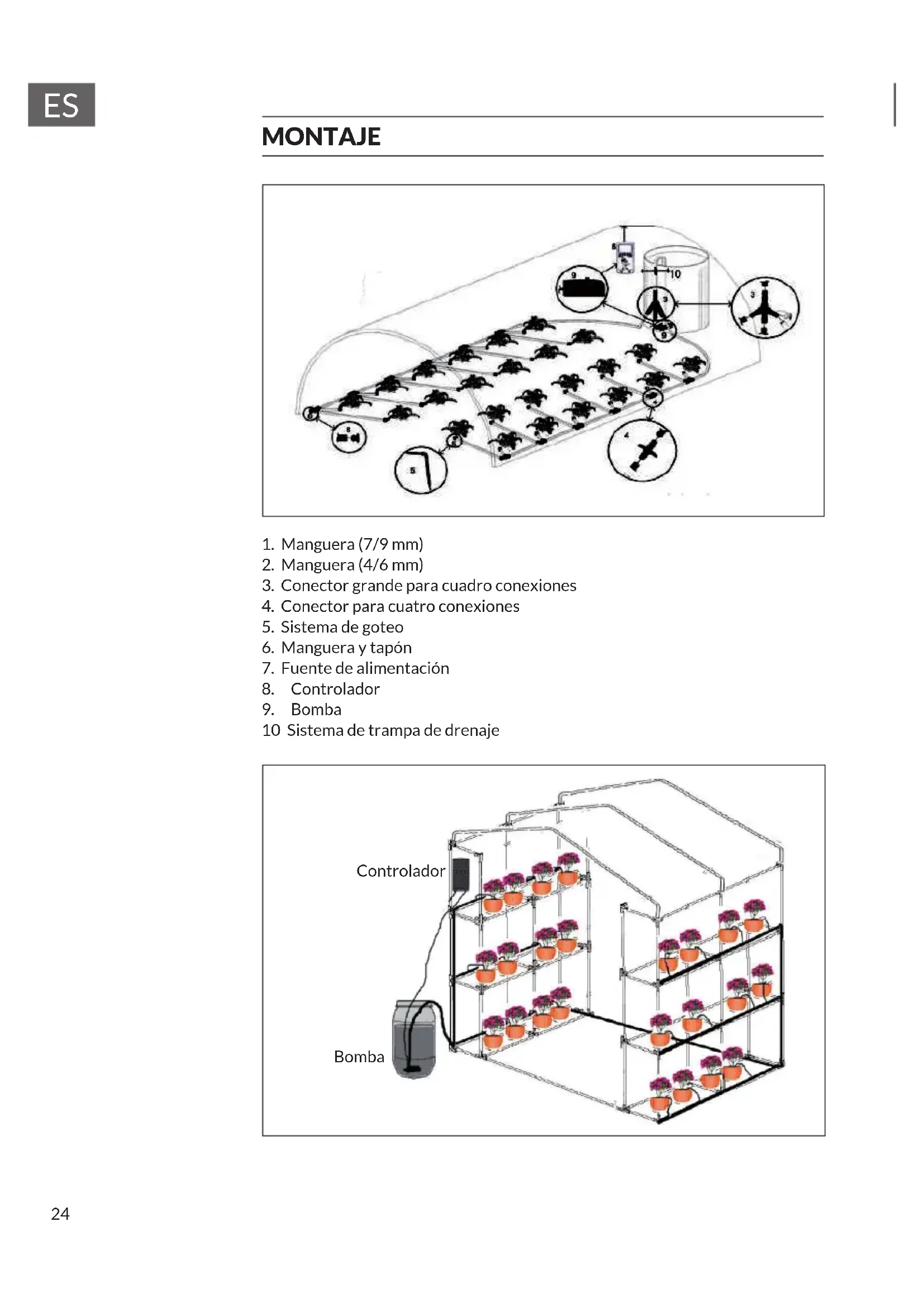 Imagen Piezas Cantidad Controlador 1 Bomba de agua 1 Fuente de alimentación 1 Set antisifón 1 Acople cuádruple 123