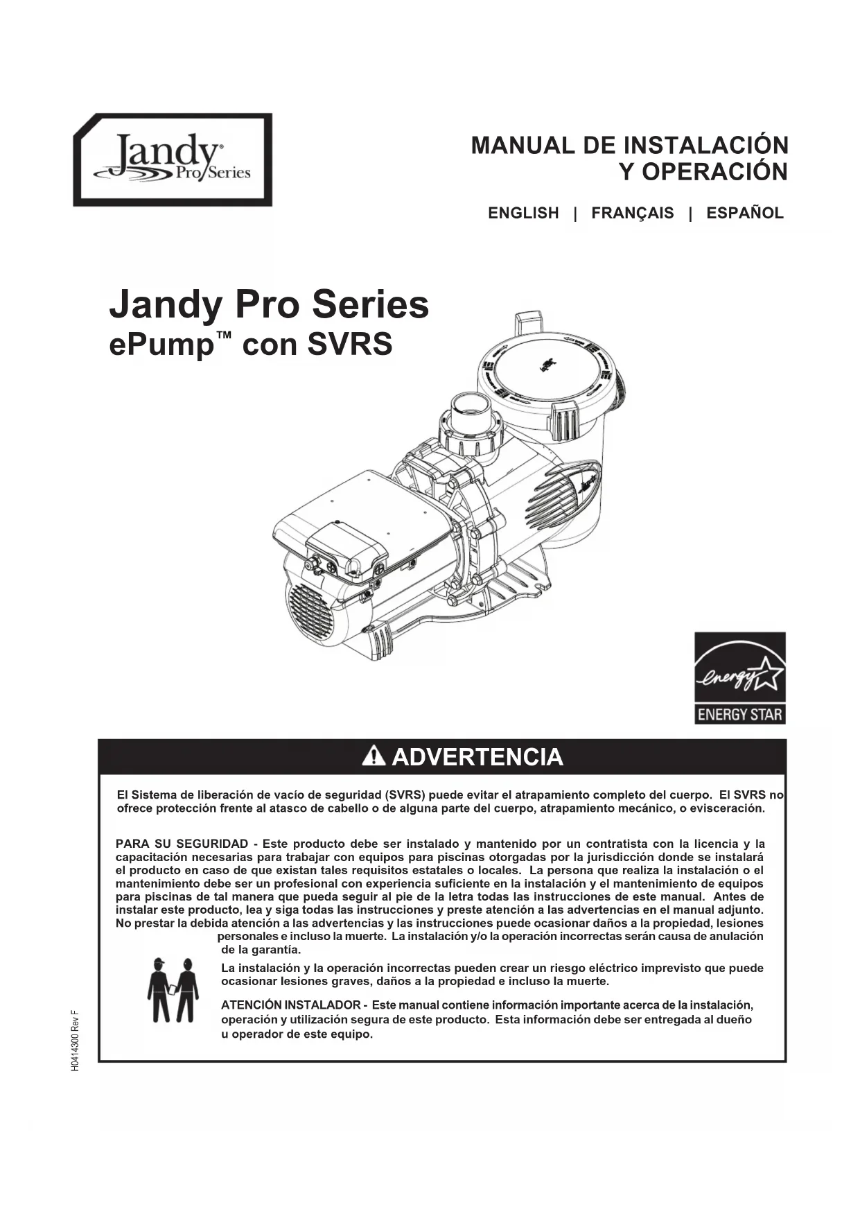 Encuentra gratis el manual del aparato ePump + SVRS Jandy en formato PDF.