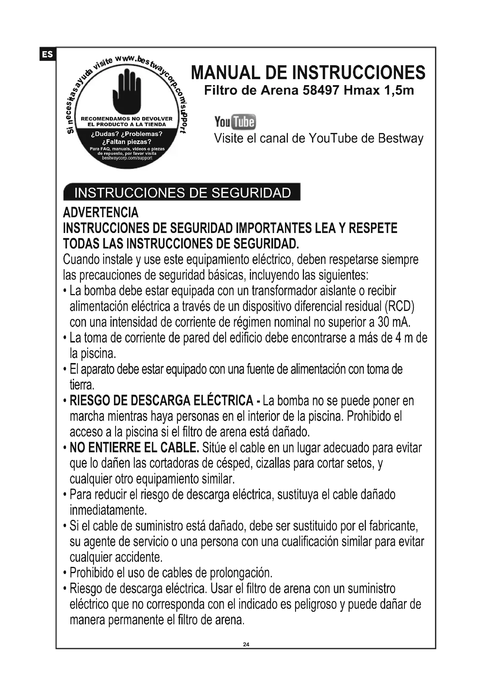 - En caso de perder las instrucciones, póngase en contacto con Bestway o realice una búsqueda en la página web: www.bestwaycorp.com