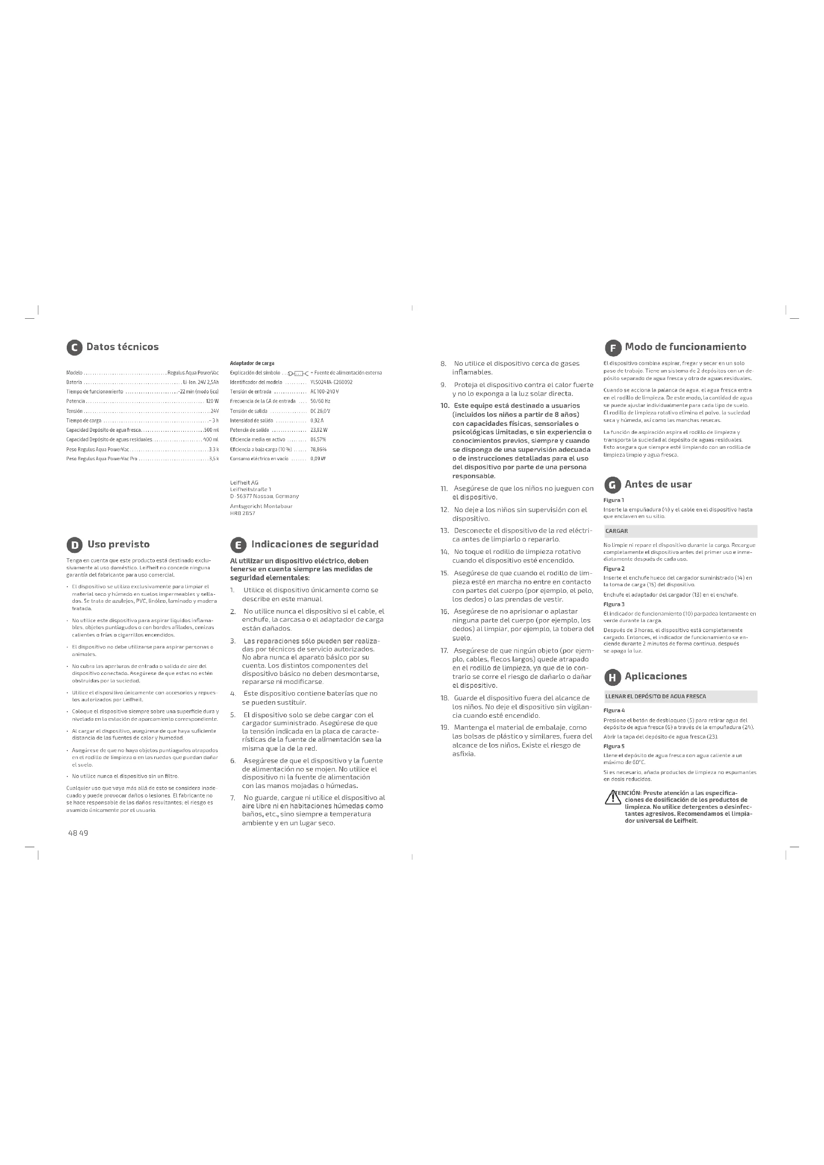 MANUAL DE USUARIO Regulus Aqua PowerVac Pro Leifheit