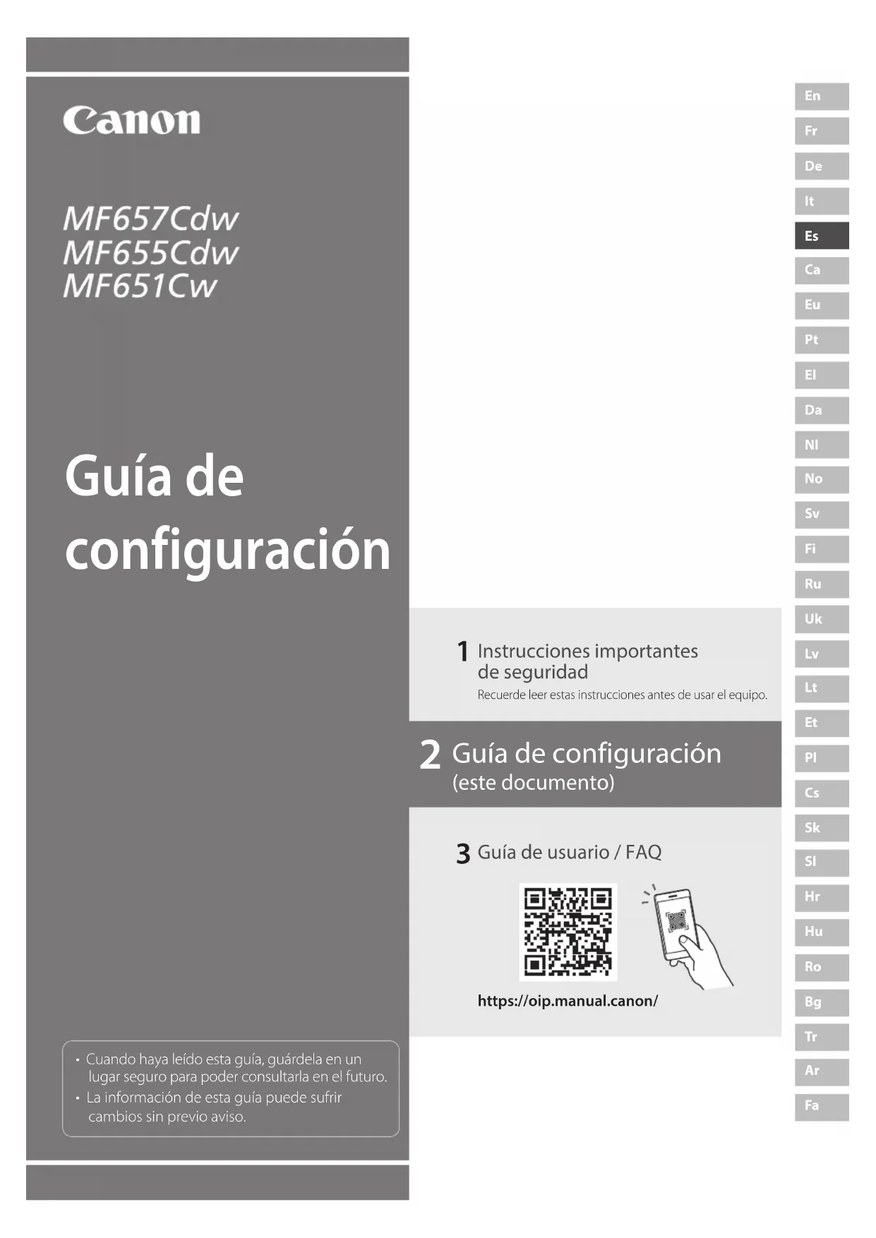 - Cuando haya leído esta guía, guárdela en un lugar seguro para poder consultarla en el futuro.• La información de esta guía puede sufrir cambios sin previo aviso.https://oip.manual.canon/ Instrucciones importantes de seguridadRecuerde leer estas instrucciones antes de usar el equipo. Guía de usuario / FAQ