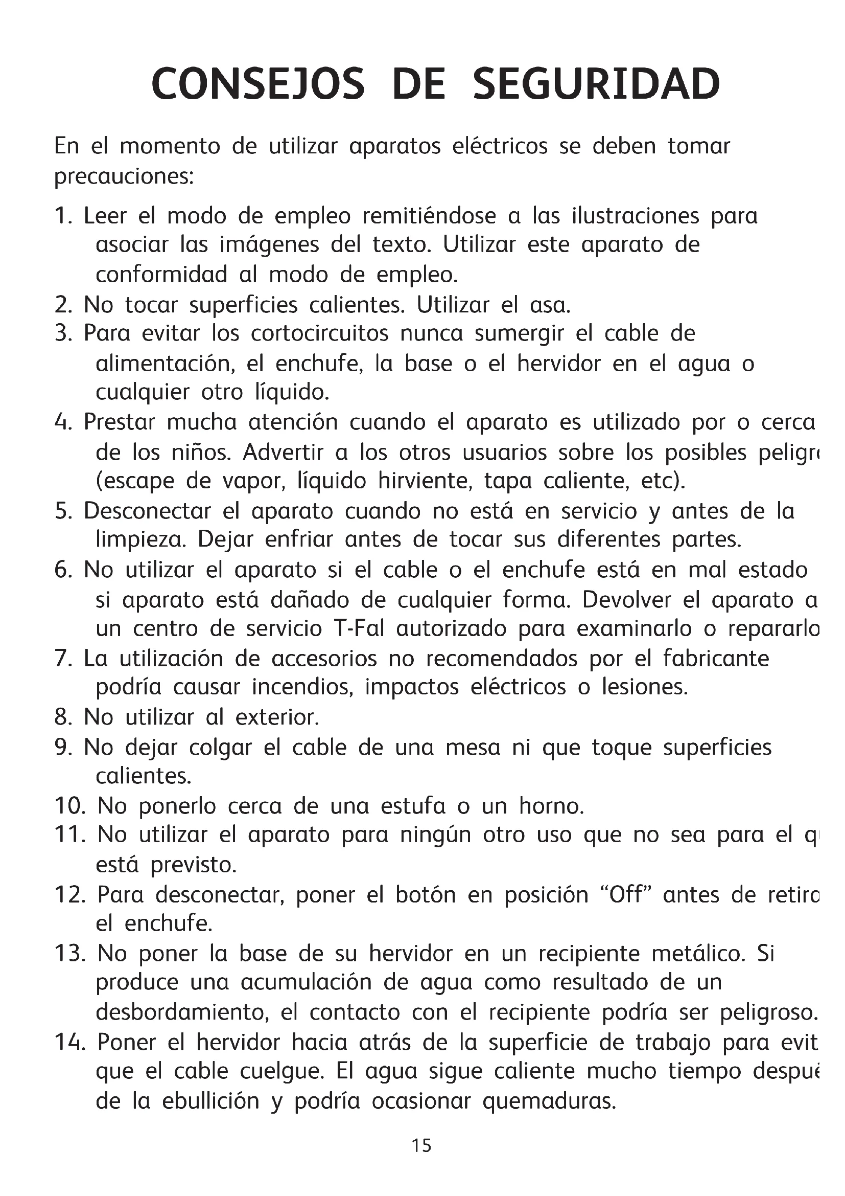 forma que no cuelguen de borde del plano de trabajo de la mesa para que los niños no puedan halarlo o tropezar accidentalmente. NOTICE BOUILLOIRE USA.qxp:bouilloire 1.qxp 5/07/07 8:48 Page 1617 Consejos de seguridad Le agradecemos que haya comprado un hervidor T-Fal. Lea atentamente las instrucciones comunes a todos nuestros modelos y consérvelas al alcance de la mano.