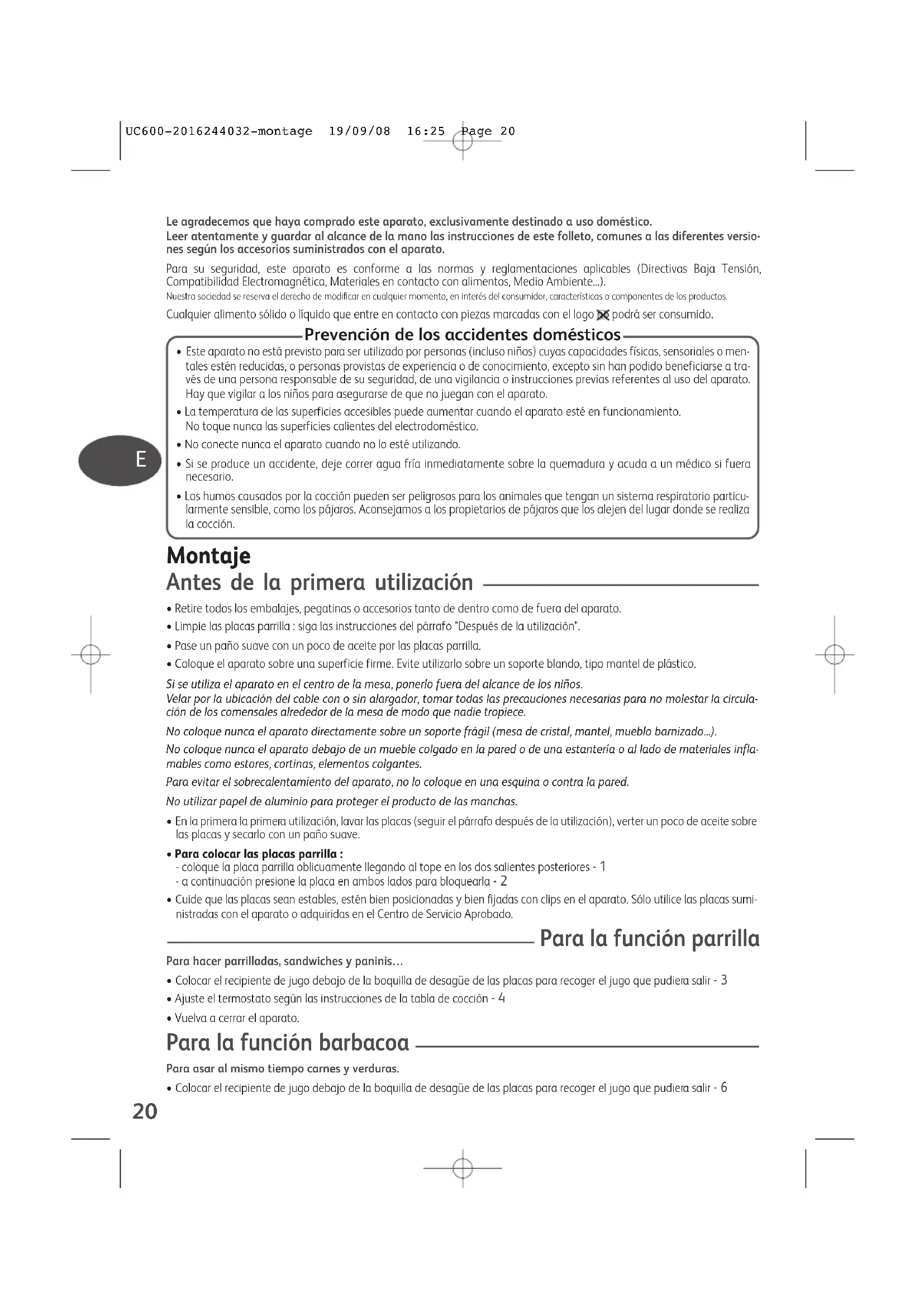 UC600-2016244032-montage 19/09/08 16:25 Page 1920 Montaje Antes de la primera utilización