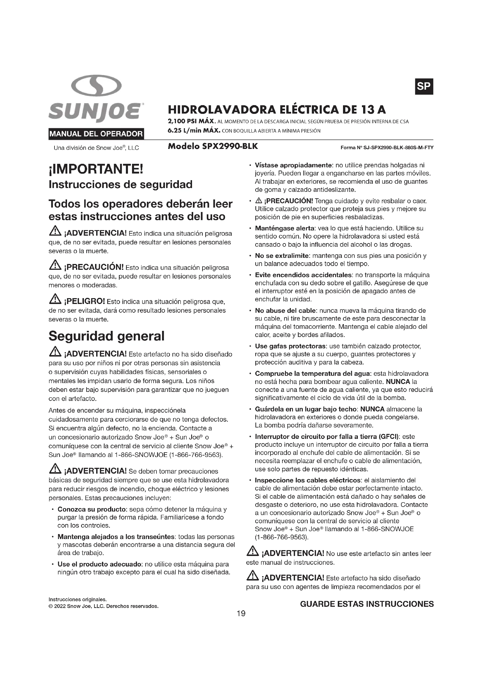 MANUAL DE USUARIO SPX2990 Sun Joe