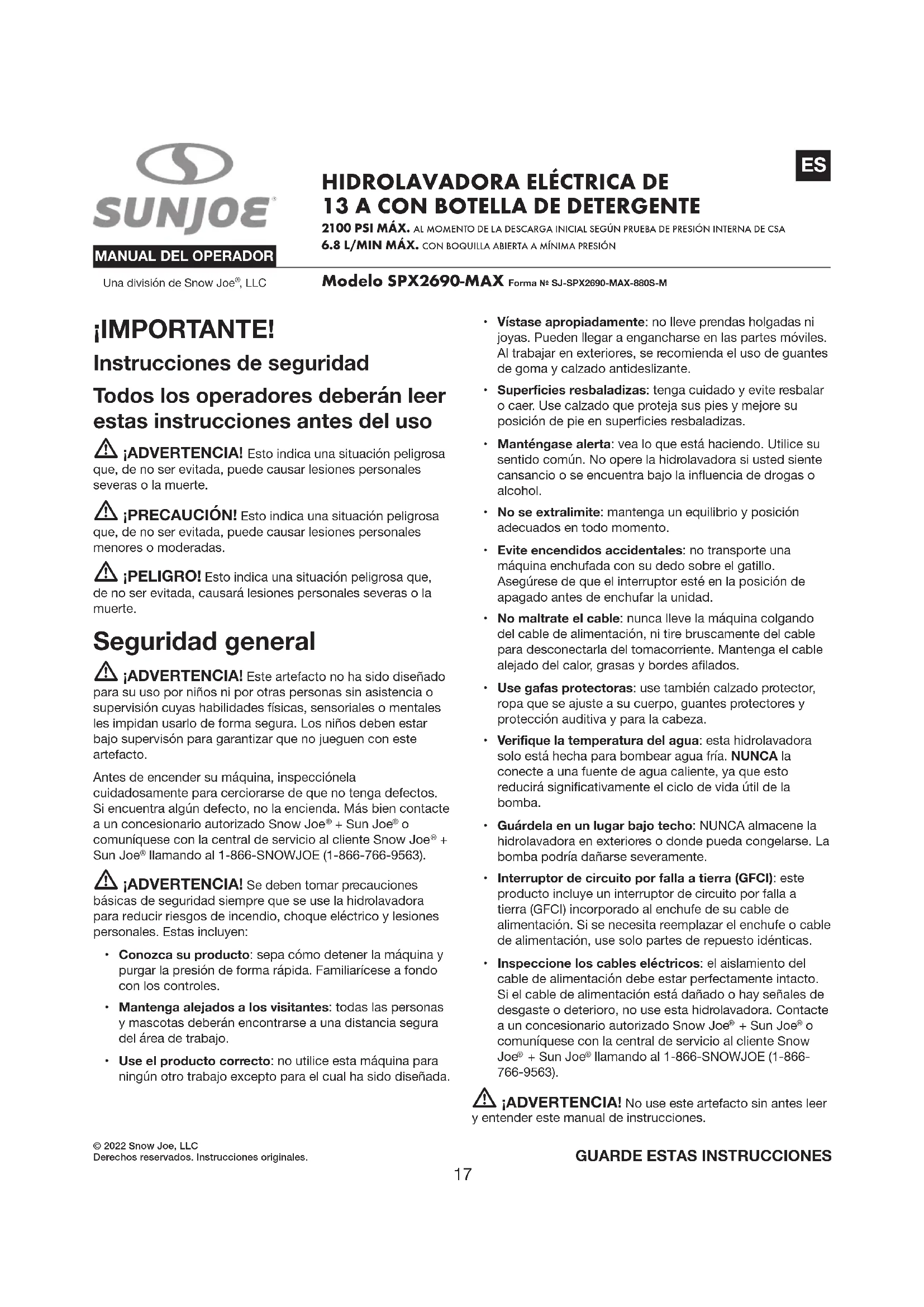 MANUAL DE USUARIO SPX2690MAX Sun Joe