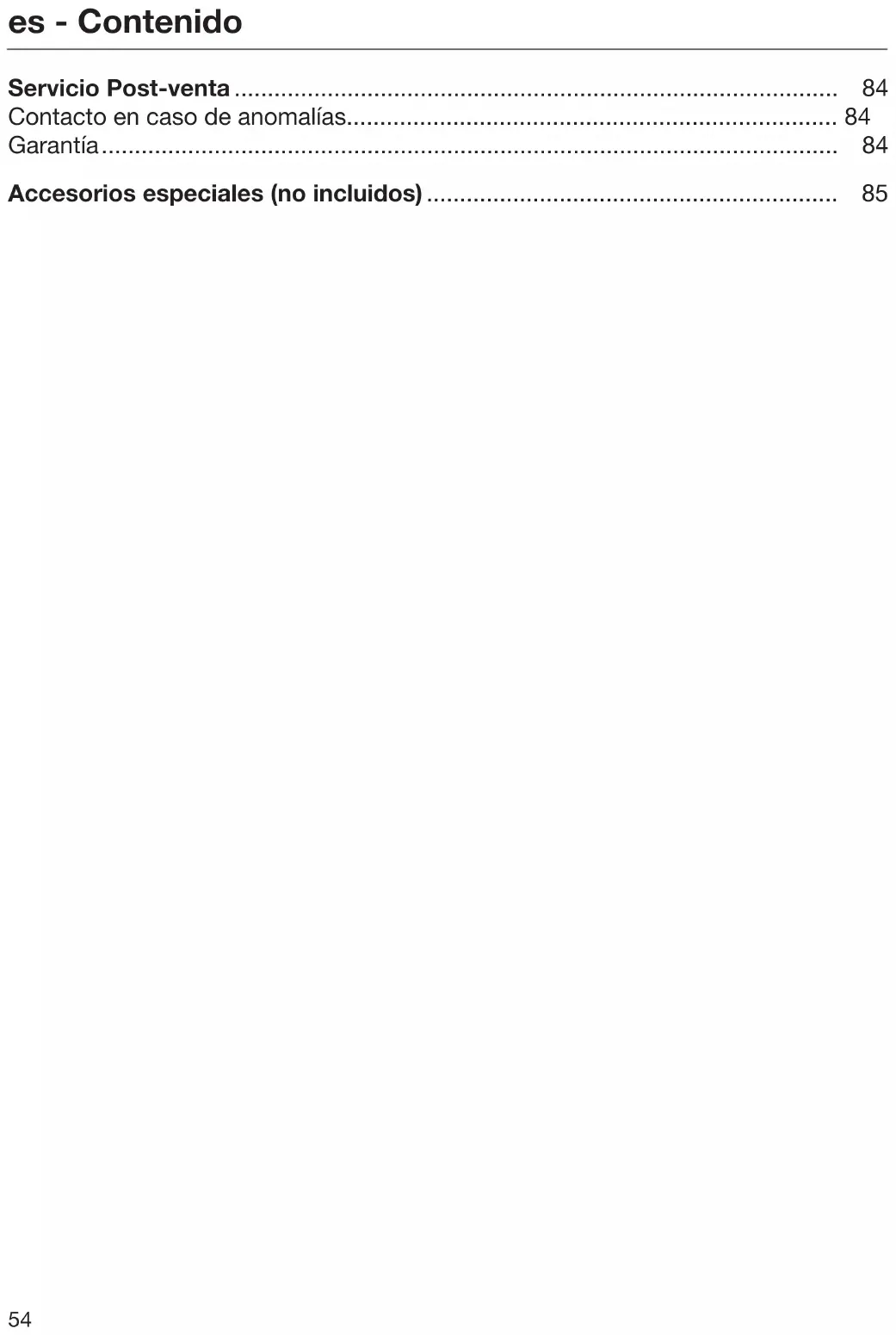 Servicio Post-venta Consulte el apartado "Asistencia en caso de averías" de nuestra web, www.miele.es, para obtener informa- ción sobre la resolución de problemas y las piezas de repuesto de Miele. Contacto en caso de anomalías En caso de anomalías, que no pueda solucionar usted mismo, informe a su distribuidor Miele o al Servicio Post- venta de Miele. Al final de este documento encontrará el número de teléfono del Servicio Post-venta de Miele. Garantía La duración de la garantía es de 3 años. Encontrará más información en las con- diciones de la garantía incluidas en el suministro. Mantenimiento Peligro de lesiones debido a la rotación del rodillo de cerdas. Podría dañarse con el cepillo girato- rio de cerdas. Desconecte el aspirador antes de cada limpieza. Para hacerlo, utilice el interruptor de Conexión/Descone- xión del mango Comfort. Aspirador y accesorios Peligro de descarga eléctrica de- bido a la tensión de red. La humedad en el aparato de carga podría dar lugar a descargas eléctri- cas. No lo introduzca en ningún caso en agua. Tenga en cuenta las indicaciones es- peciales del capítulo «Mantenimiento» respecto al depósito recogepolvo. Limpie el aspirador y todos los acceso- rios de plástico con un producto de lim- pieza común para plásticos. Daños causados por el uso de productos de limpieza inadecuados. Todas las superficies son sensibles a los arañazos. Todas las superficies pueden desteñirse o modificarse si entran en contacto con un detergen- te inadecuado. No utilice productos de limpieza abrasivos, limpiacristales, limpiado- res multiuso ni productos de cuidado que contengan aceites.es