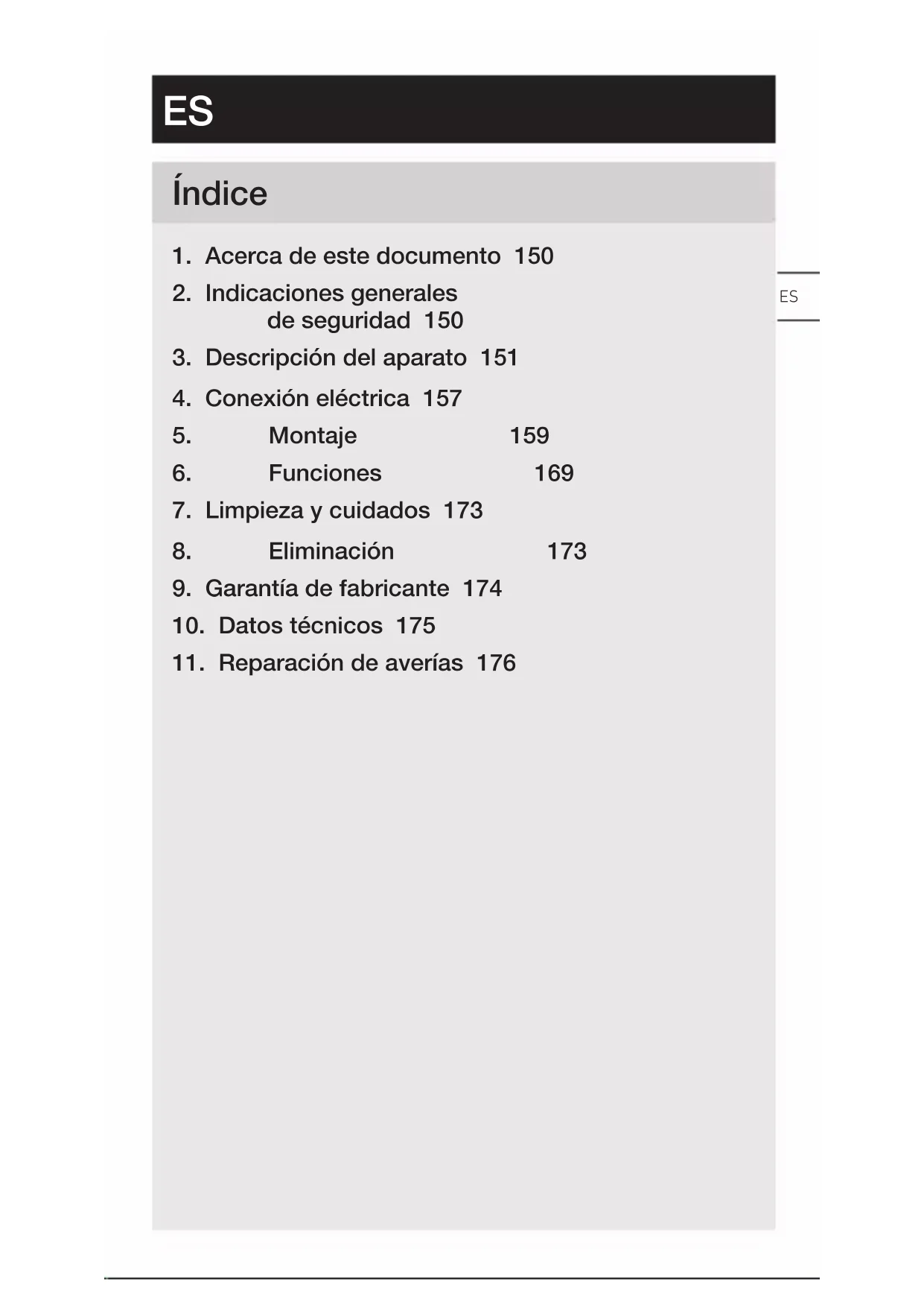 – 151 – Índice – Las reparaciones solo están permitidas a empresas especializadas.