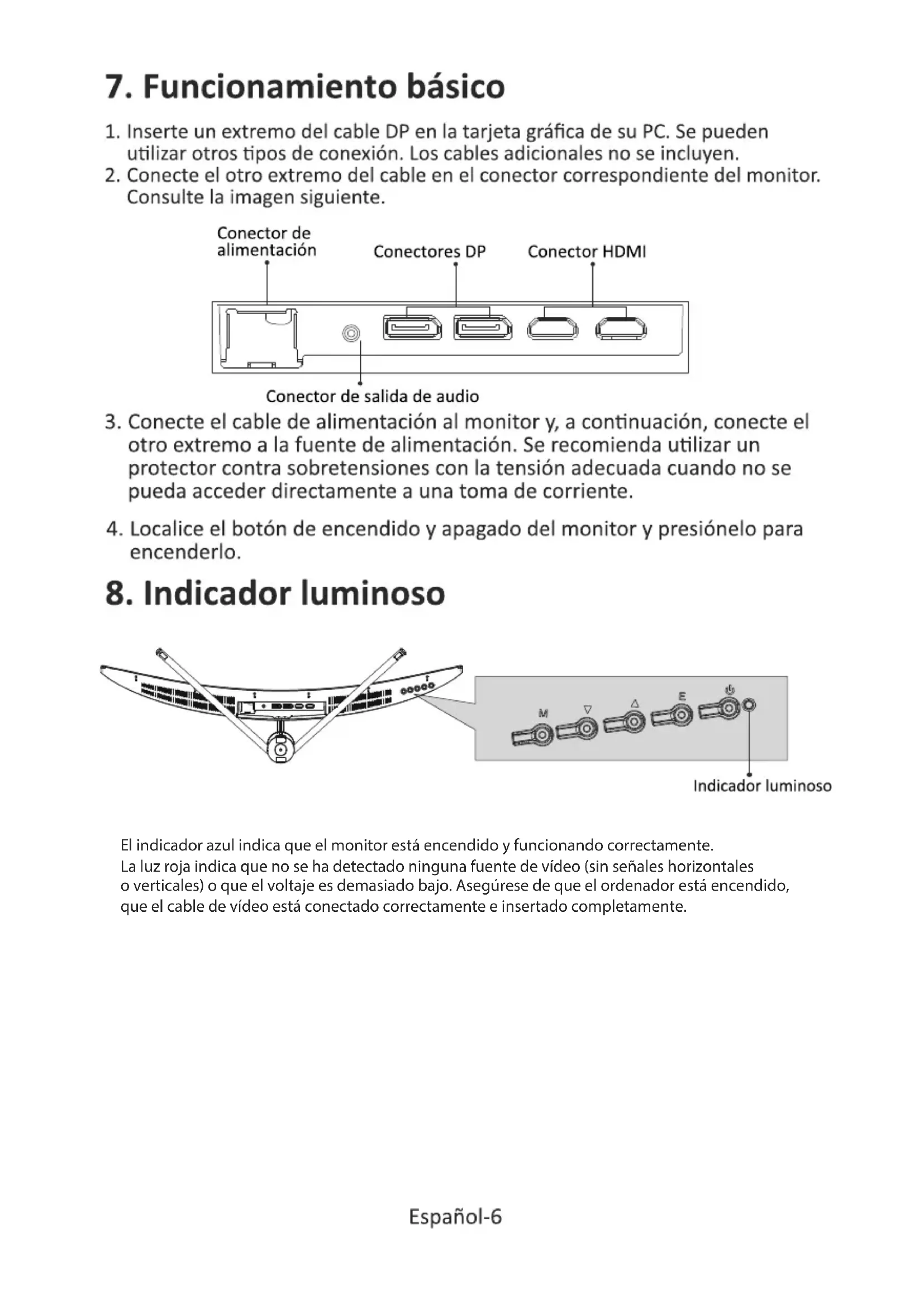 EActivado/Cerrar Activado/Cerrar Activado/Cerrar Activado/Cerrar Activado/Cerrar Activado/Cerrar Activado/Cerrar Activado/Cerrar Activado/Cerrar Activado/Cerrar Activado/Cerrar Activado/Cerrar Activado: Modo Película/Modo Lectura/ Modo Noche Cerrar Cerrar/HDR Estándar Bal. sombras Cerrar/Normal/Rápido/Ultrarrápido Pos.: Arriba-Derecha/Arriba-Izda Abajo-Derecha/Abajo-Izda Cerrar/Normal/Experto/Elaboración Cerrar Cerrar Activado: 15:00/30:00/45:00/60:00 Activado: Punto mira 1/Punto mira 2/ Punto mira 3/Punto mira 4/Punto mira 5/ Punto mira 6 Ajustes juego Modo Estándar Modo RTS/RPG Modo Estadio FPS Modo Estadio MOBA FreeSync Premium HDR Tpo. respuesta MPRT Frec. actualizac. Pto mira juego Tiempo juego Brillo dinámico Luz ambiente Cálida Fría Natural Ajustes color Brillo 0-100 0-100 0-100 0-5 1,8/2,0/2,2/2,4/2,6/Curva S Pantalla Pan./4:3/1:1/Automático Contraste Luz azul baja Nitidez Gama Relac. aspecto Ajustes imagen DCR Modo contextual 0-100Rojo/Verde/Azul/Cian/Magenta/Amarillo 0-100 Auto/DP1/DP2/HDMI1/HDMI2 简体中文/English/한국어/عربى/Portugues do Brasilazil/Deutsch/Nederland/Suomi/Français/Ελληνικά /Indonesia/Italiano/日本語/Malaysia/Polskie/Português /Pусский/Español/ไทย/Українська/Tiếng Việt/ 繁體中文/Türkçe Tpo espera OSD Pos. hor. OSD Pos. vert. OSD Transp. OSD 5-60 0-100 0-100 0-100 0-5 Conf. acceso1 Conf. acceso2 Conf. acceso3 Normal/90/180/270 No/Sí Fte. entrada:/Resolución:/Modo:/Ver. HDR: Volumen Silencio Conexión aut. Aviso prot. ojos Reiniciar Información Idioma Rotación OSD Bloqueo de OSD Señal de entrada Ajustes OSD Otros ajustes Cerrar/Modo PIP/PBP 2 Vent 1:1