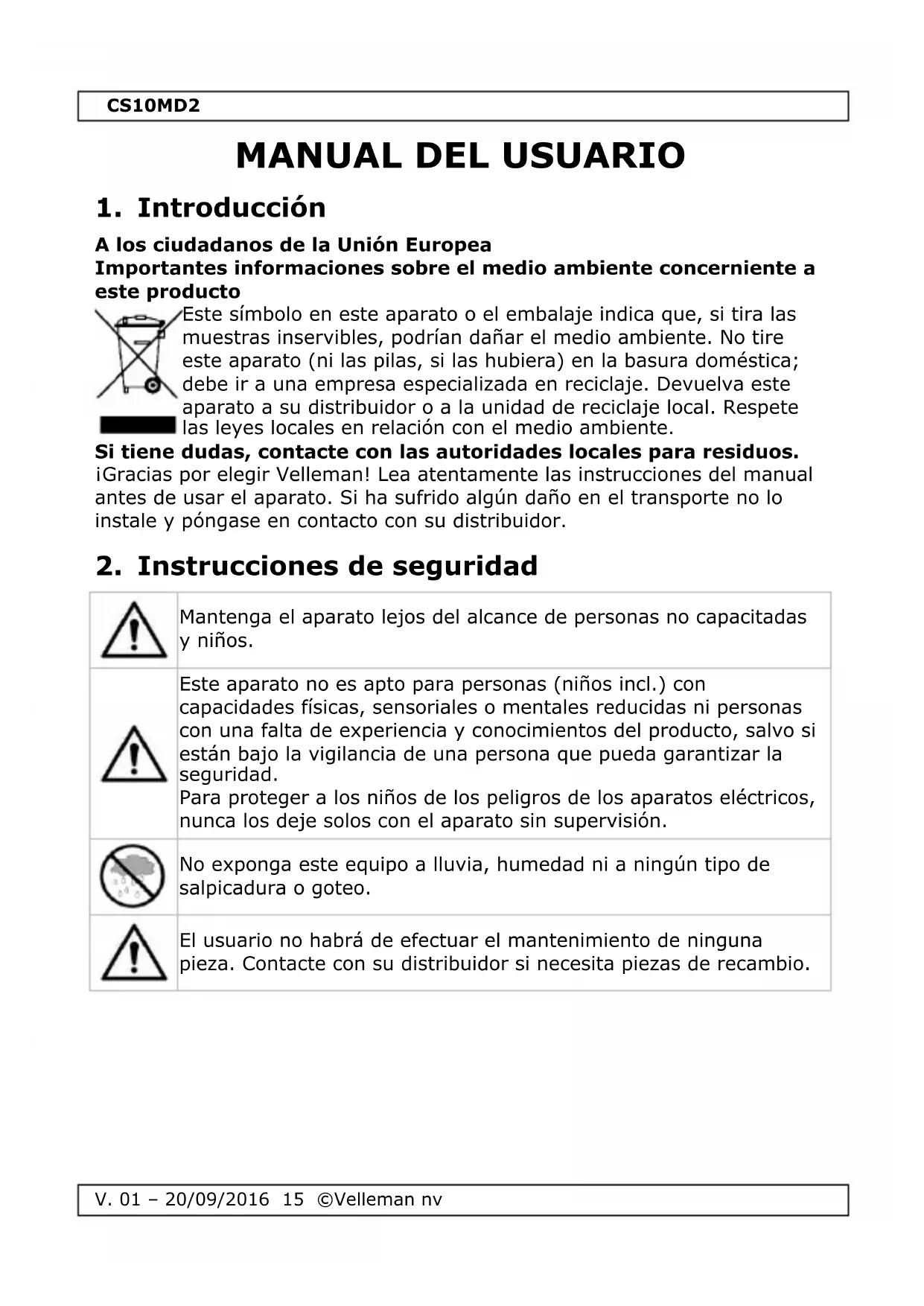 MANUAL DE USUARIO CS10MD2 VELLEMAN