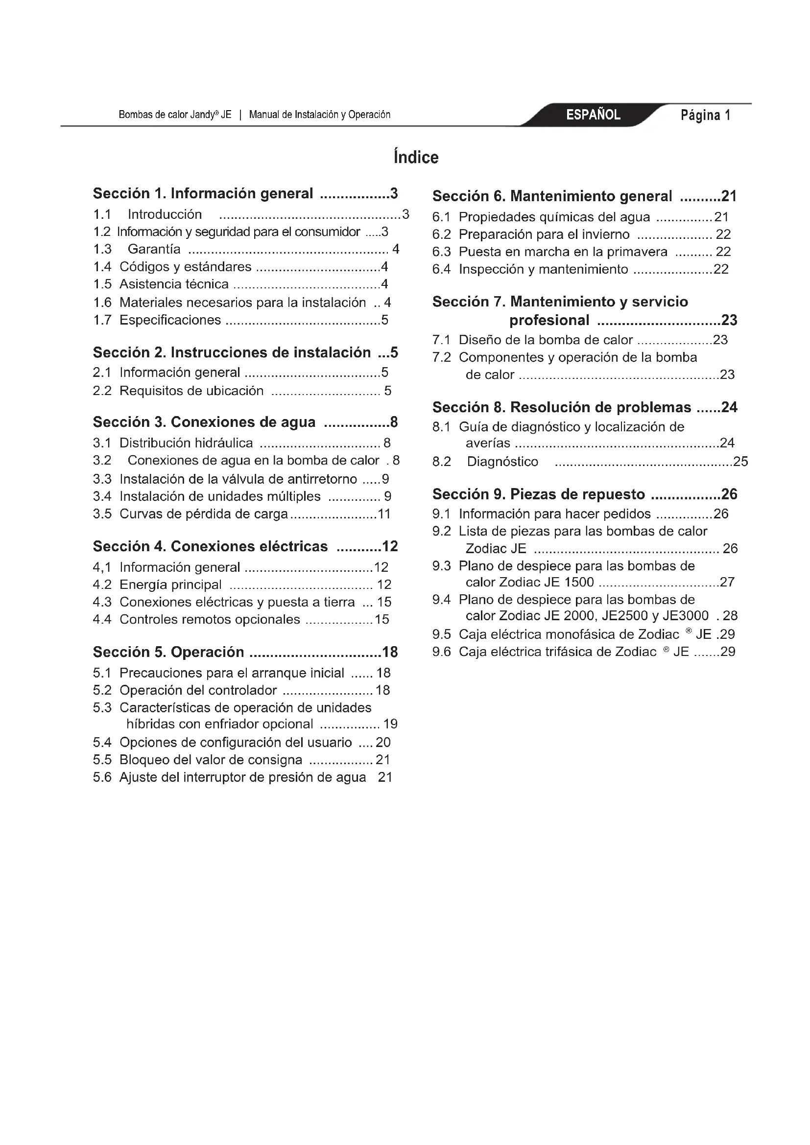 JE | Manual de Instalación y OperaciónPágina 3 ESPAÑOL Bombas de calor Jandy