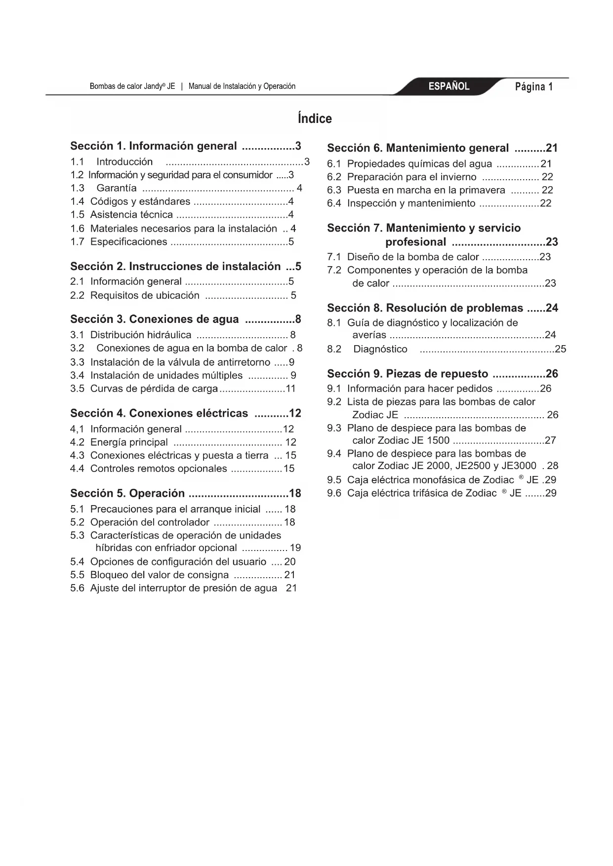 JE | Manual de Instalación y Operación Índice Sección 1. Información general .................3