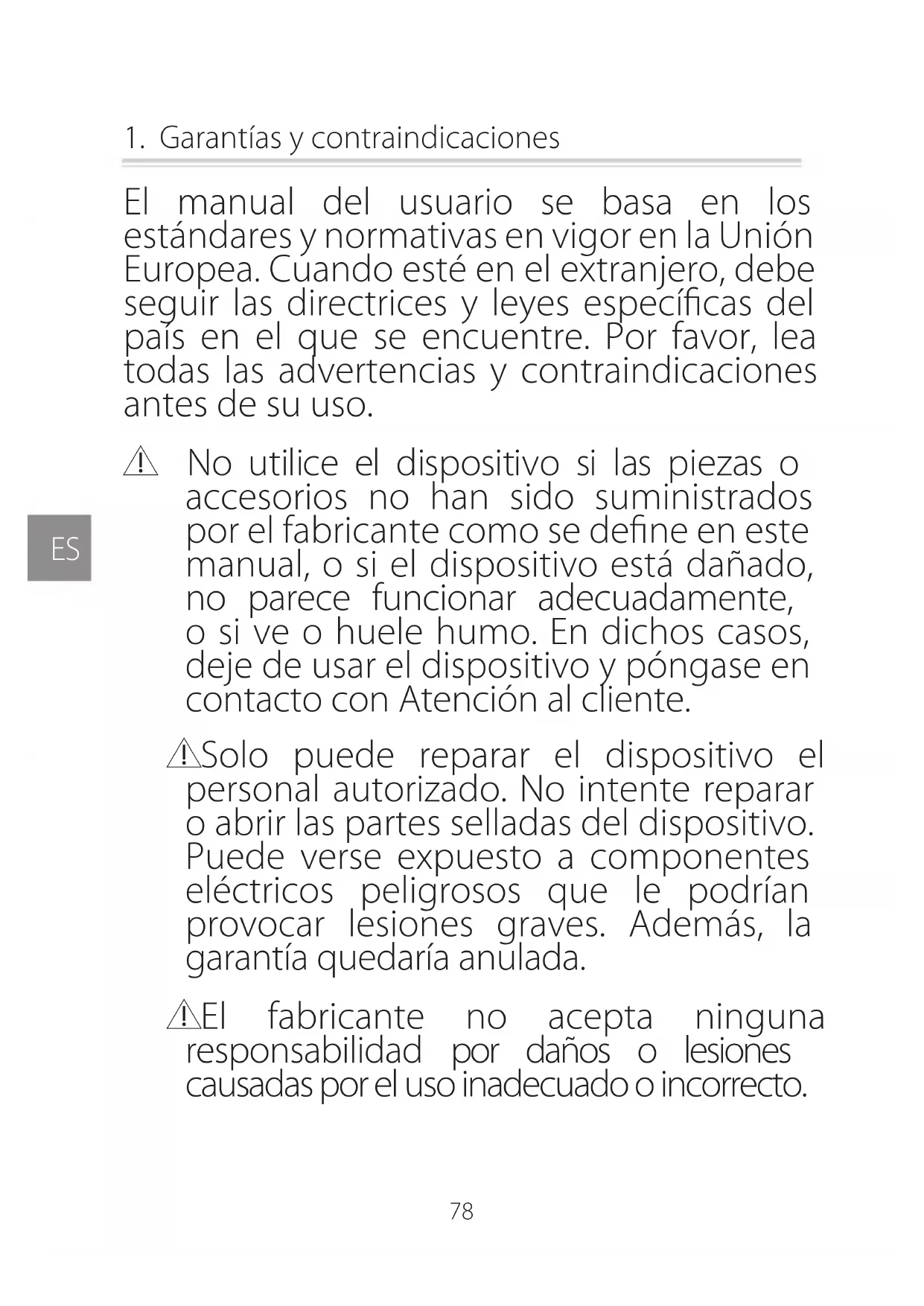1. Garantías y contraindicaciones