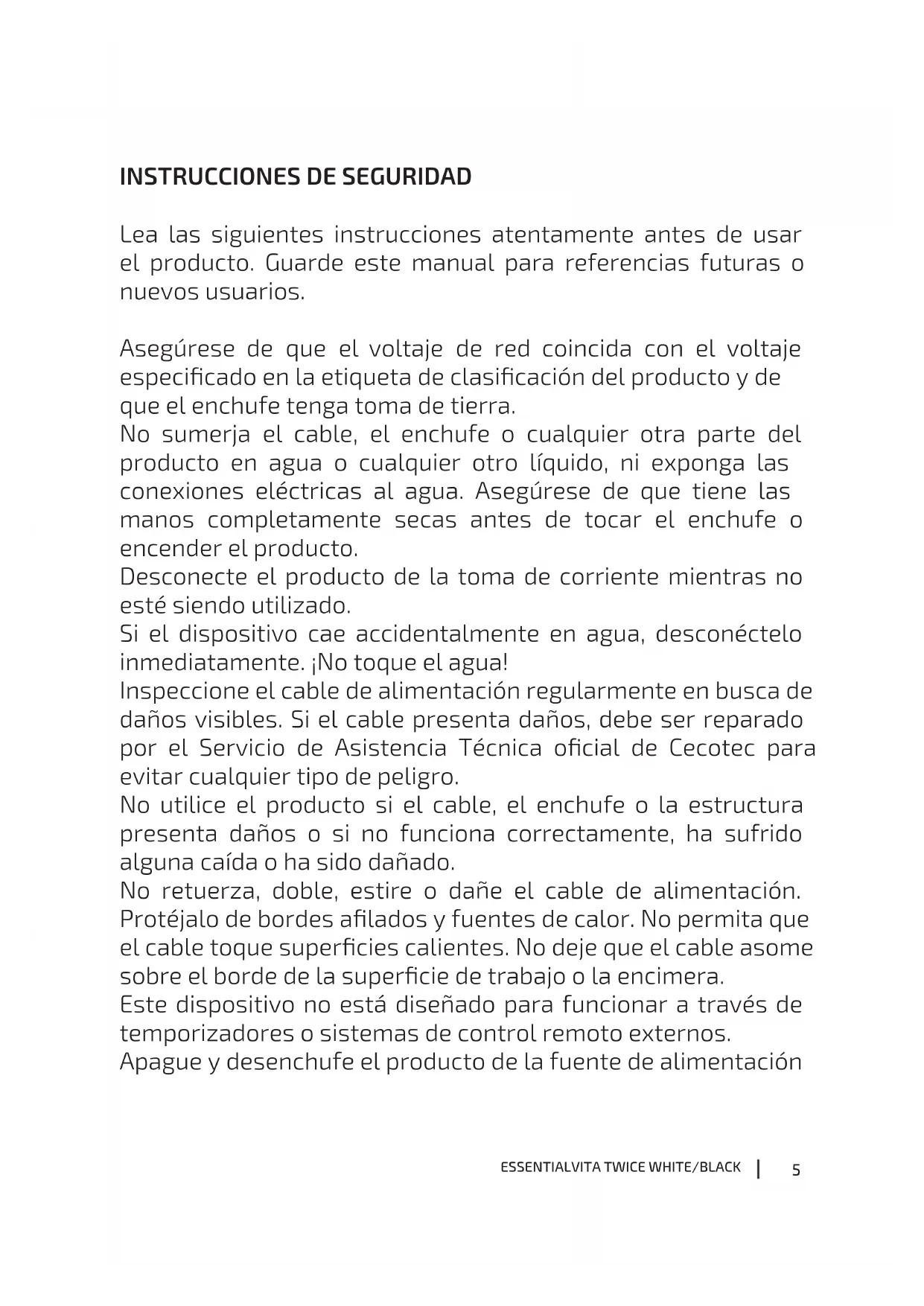 MANUAL DE USUARIO EssentialVita Twice CECOTEC