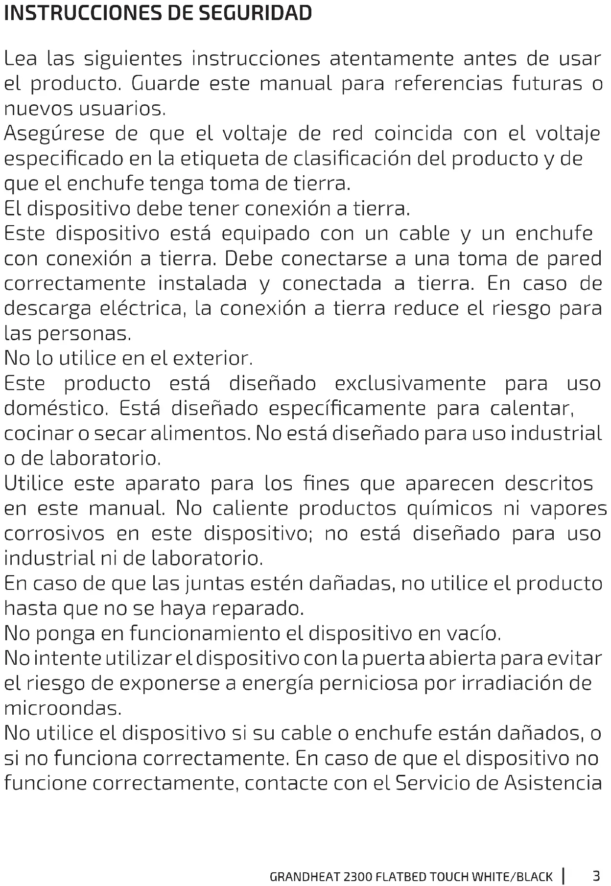 MANUAL DE USUARIO GrandHeat 2300 Flatbed Touch CECOTEC