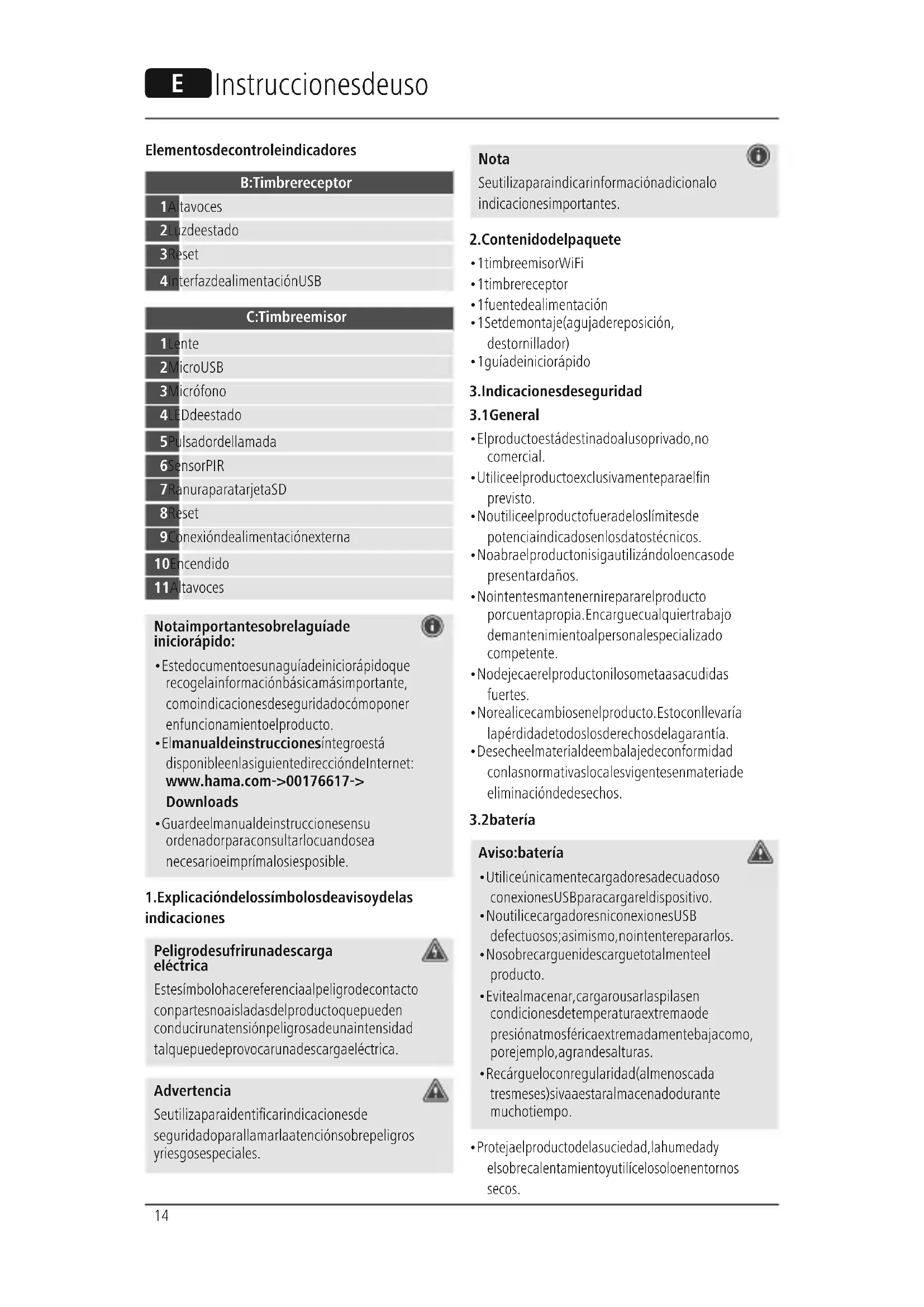 Descarga las instrucciones para tu Timbres de puertas en formato PDF gratis! Encuentra tus instrucciones 176617 - HAMA y toma tu dispositivo electrónico nuevamente en la mano. En esta página están publicados todos los documentos necesarios para el uso de su dispositivo. 176617 de la marca HAMA.