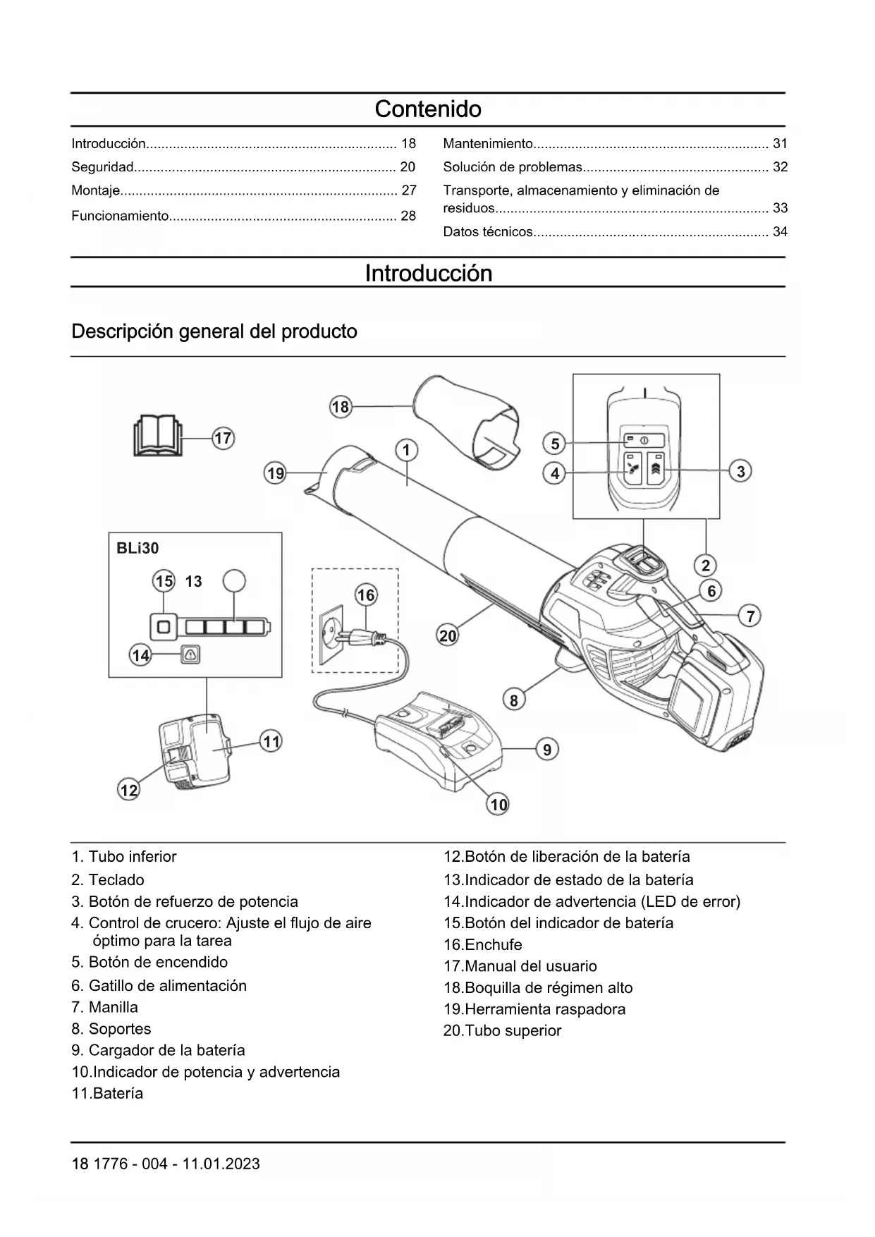 - Las fuertes corrientes de aire pueden mover objetos a tal velocidad que pueden rebotar y causar lesiones oculares graves. 1776 - 004 - 11.01.2023 23• No dirija el flujo de aire hacia personas o animales.
