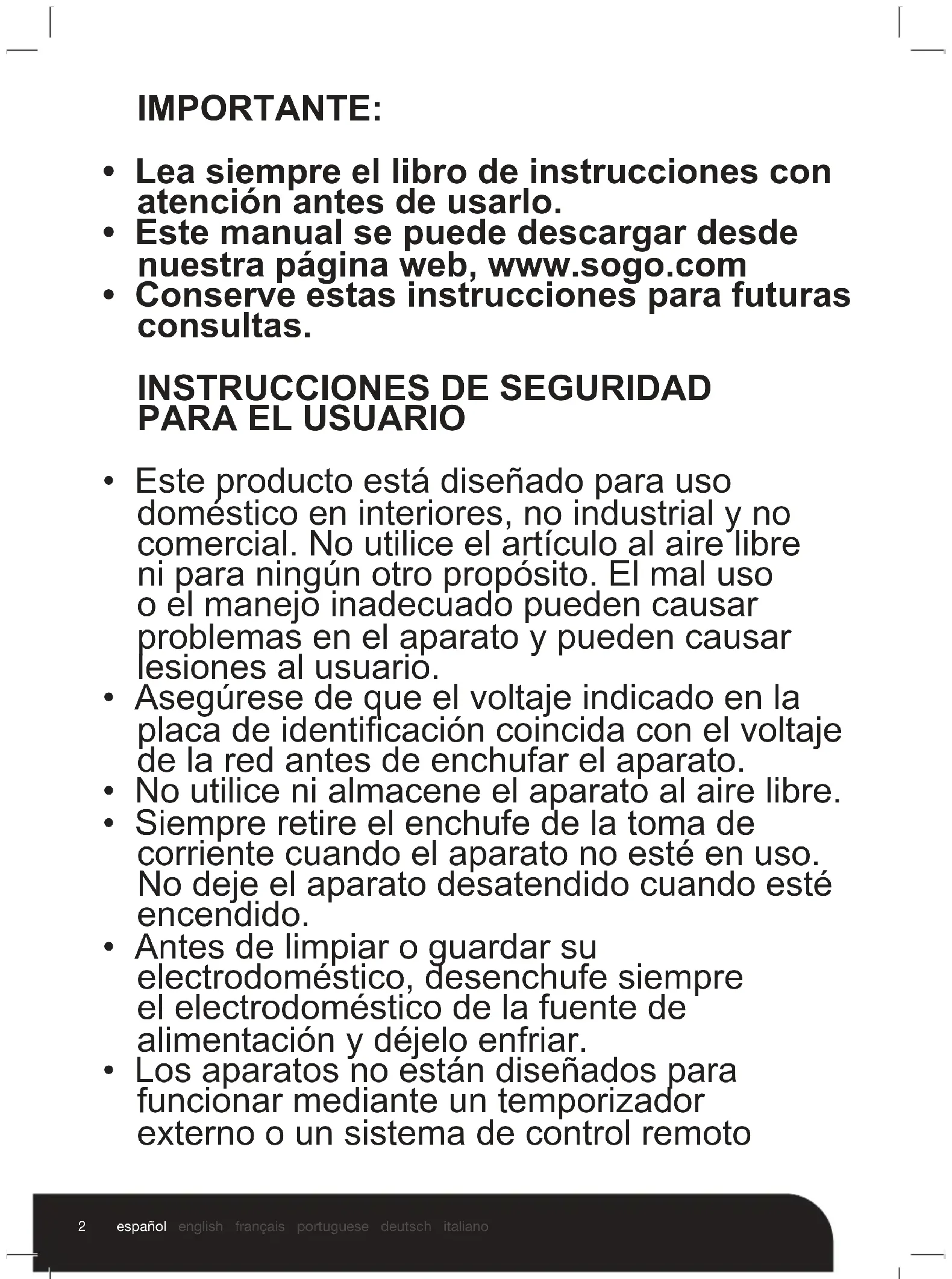 - Este manual se puede descargar desde nuestra página web, www.sogo.com