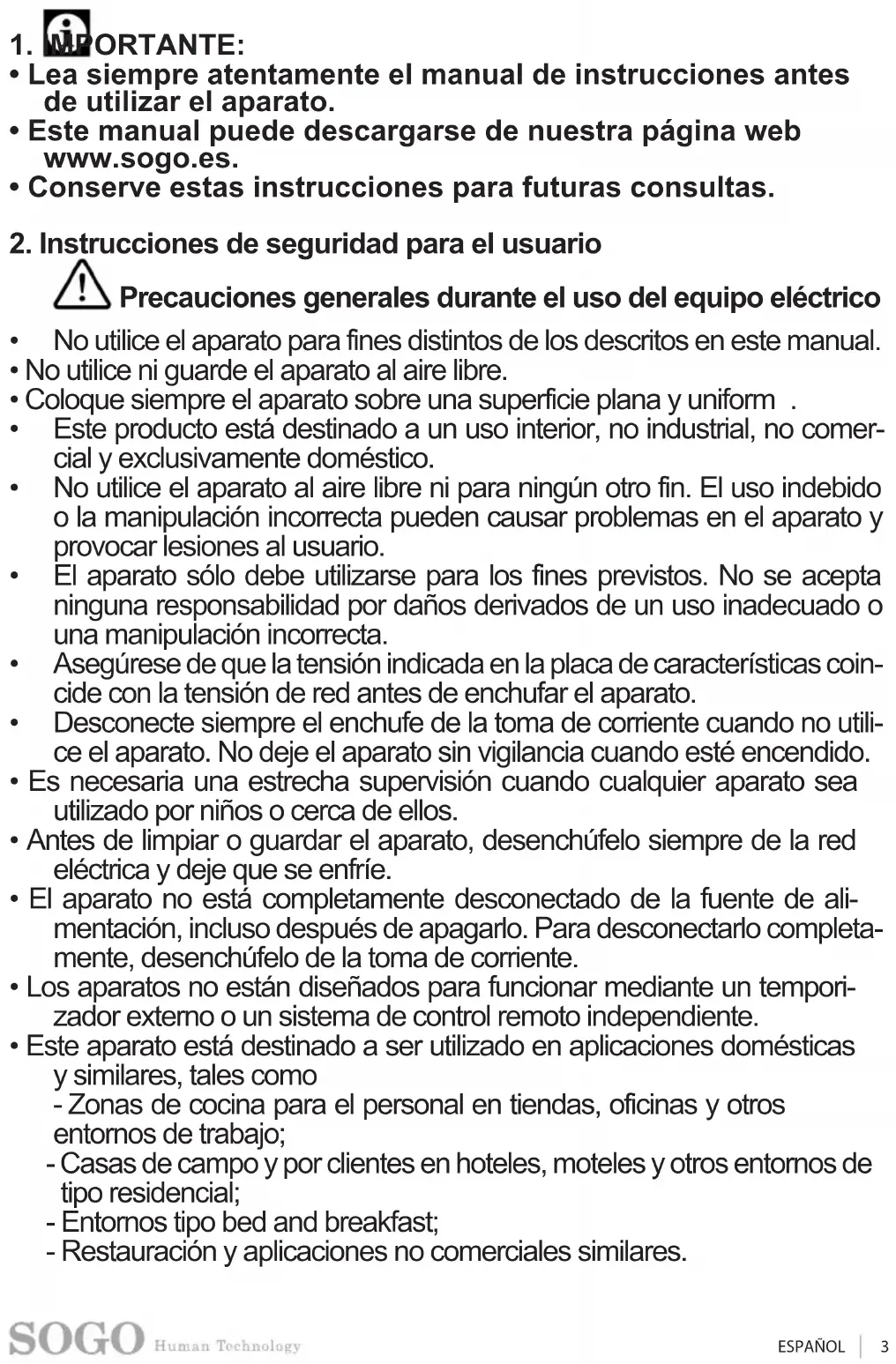Encuentra gratis el manual del aparato SS10340 Sogo en formato PDF.