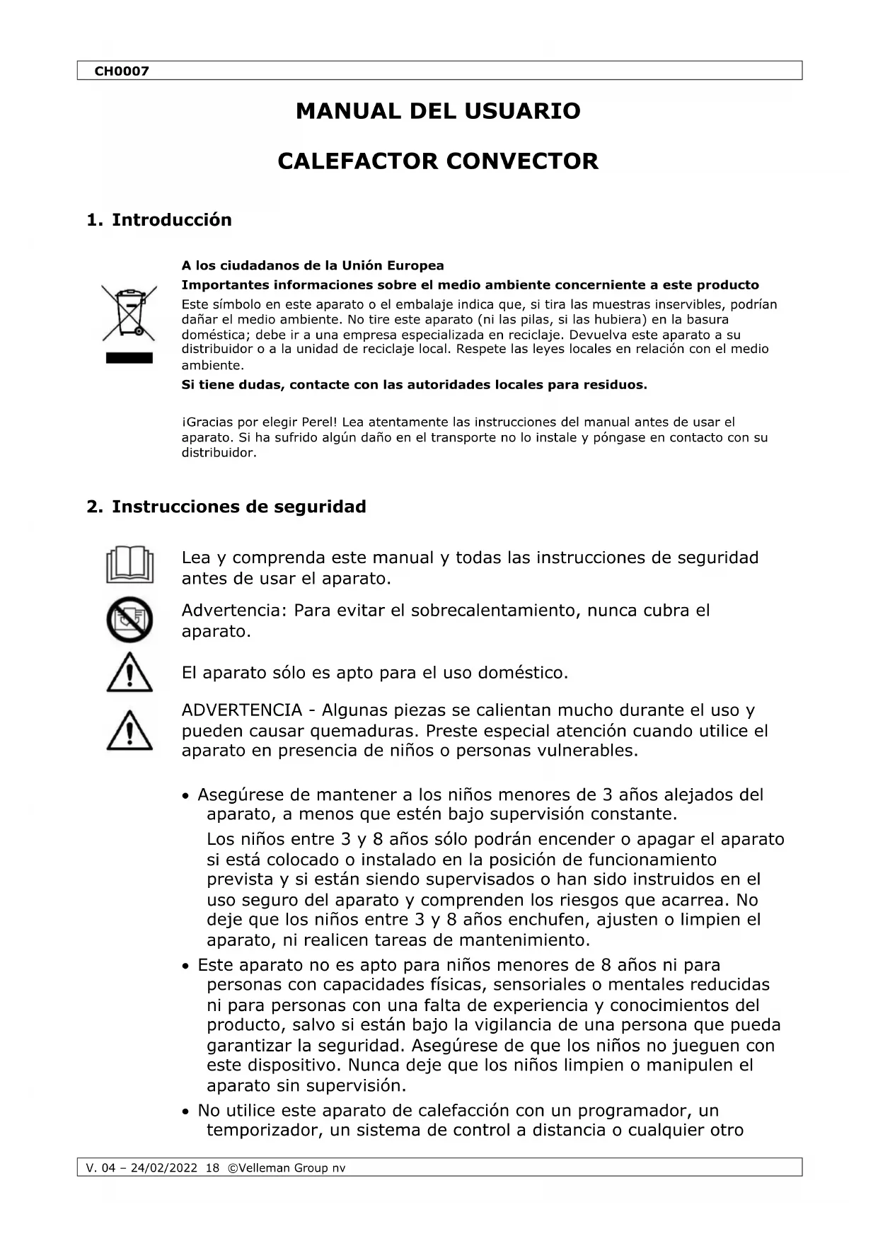 MANUAL DE USUARIO CH0007 Perel