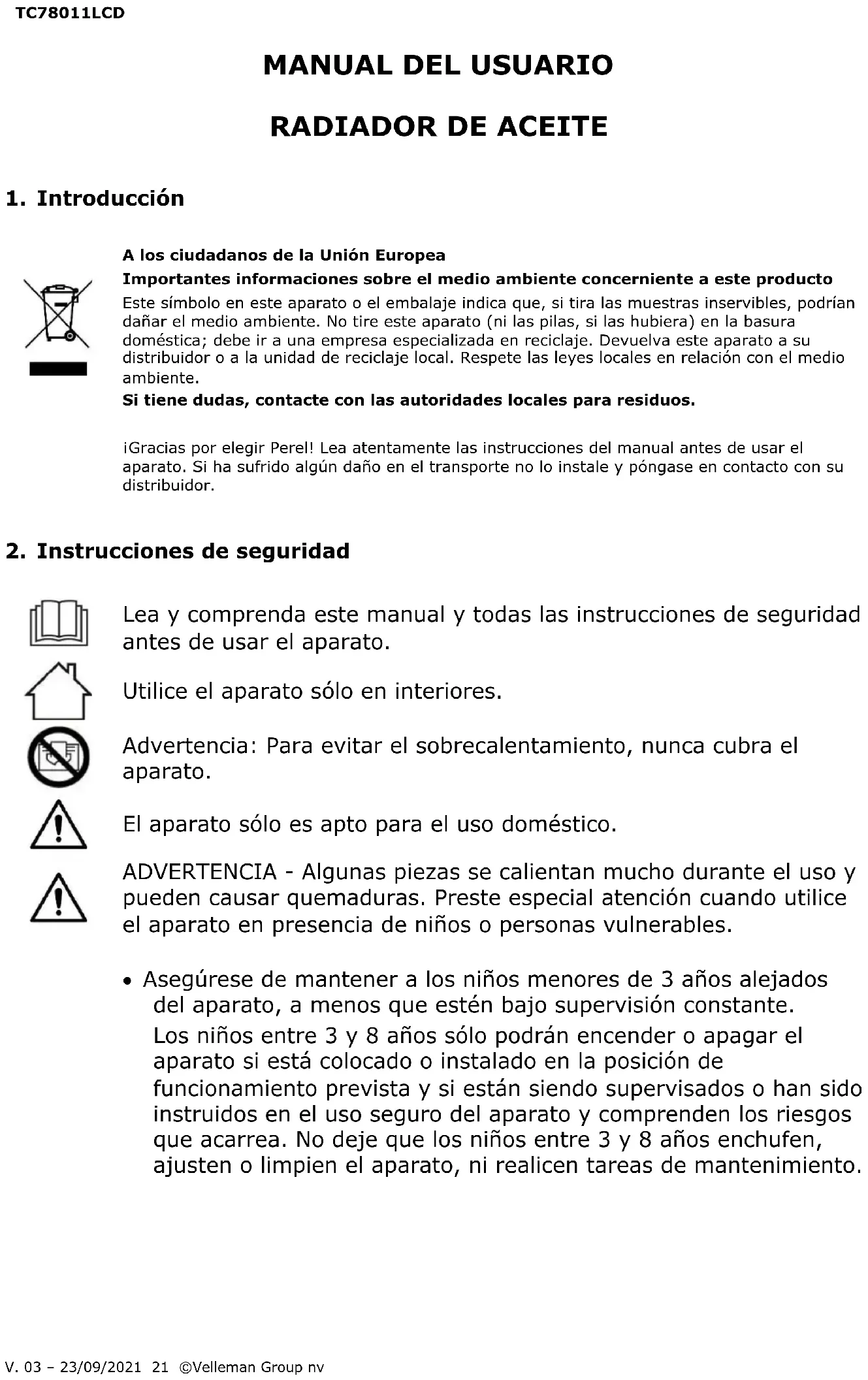 MANUAL DE USUARIO TC78011LCD Perel