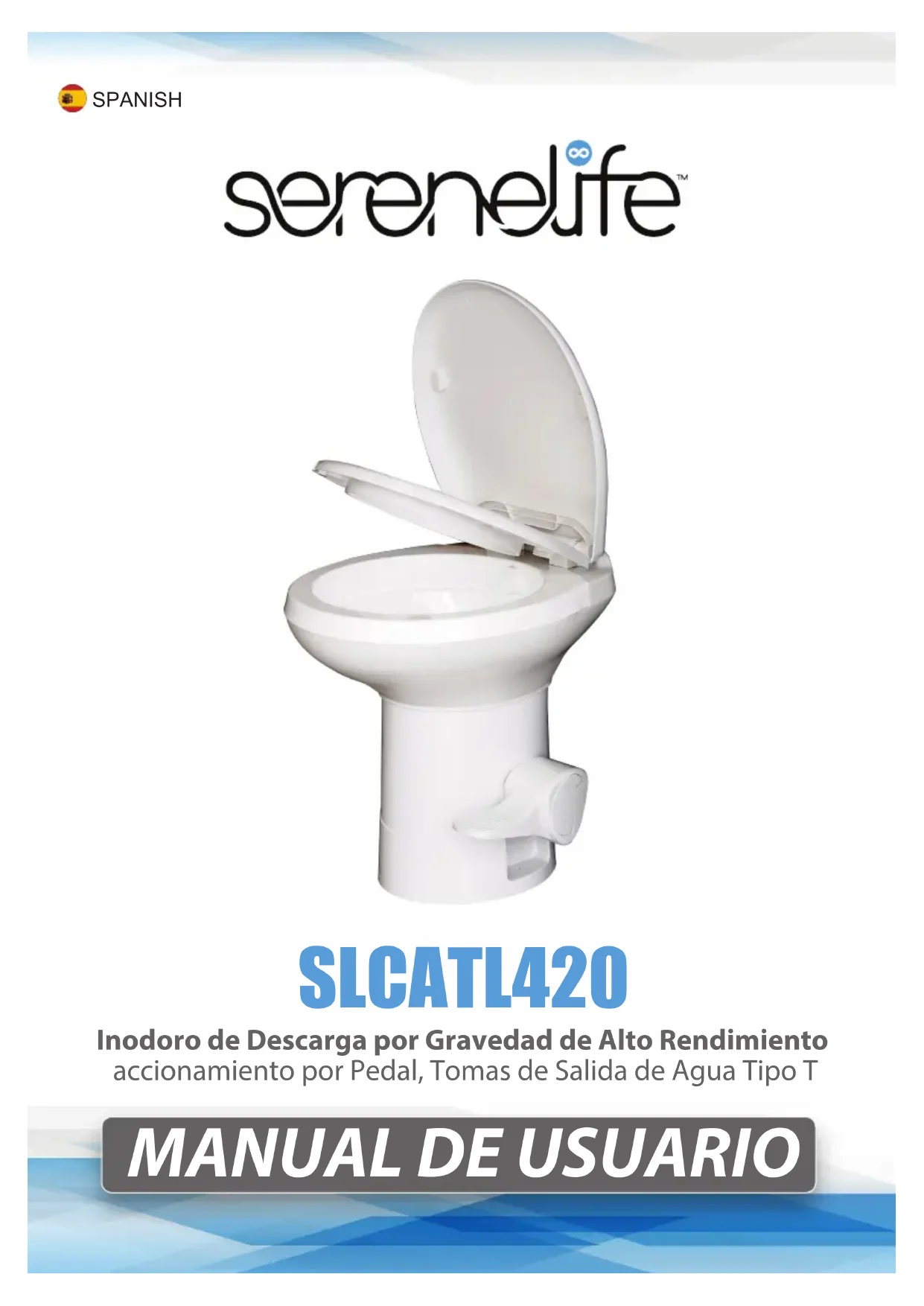 - Fácil instalación: El diseño de dos tornillos se adapta a la mayoría de las bridas de inodoro existentes, ideal para instalaciones nuevas o de sustución. Simplemente colóquelo en la brida del suelo, apriete los pernos, conecte el agua y ya está listo. Manual del usuario del inodoro con descarga por gravedadwww.serenelifehome.com 3