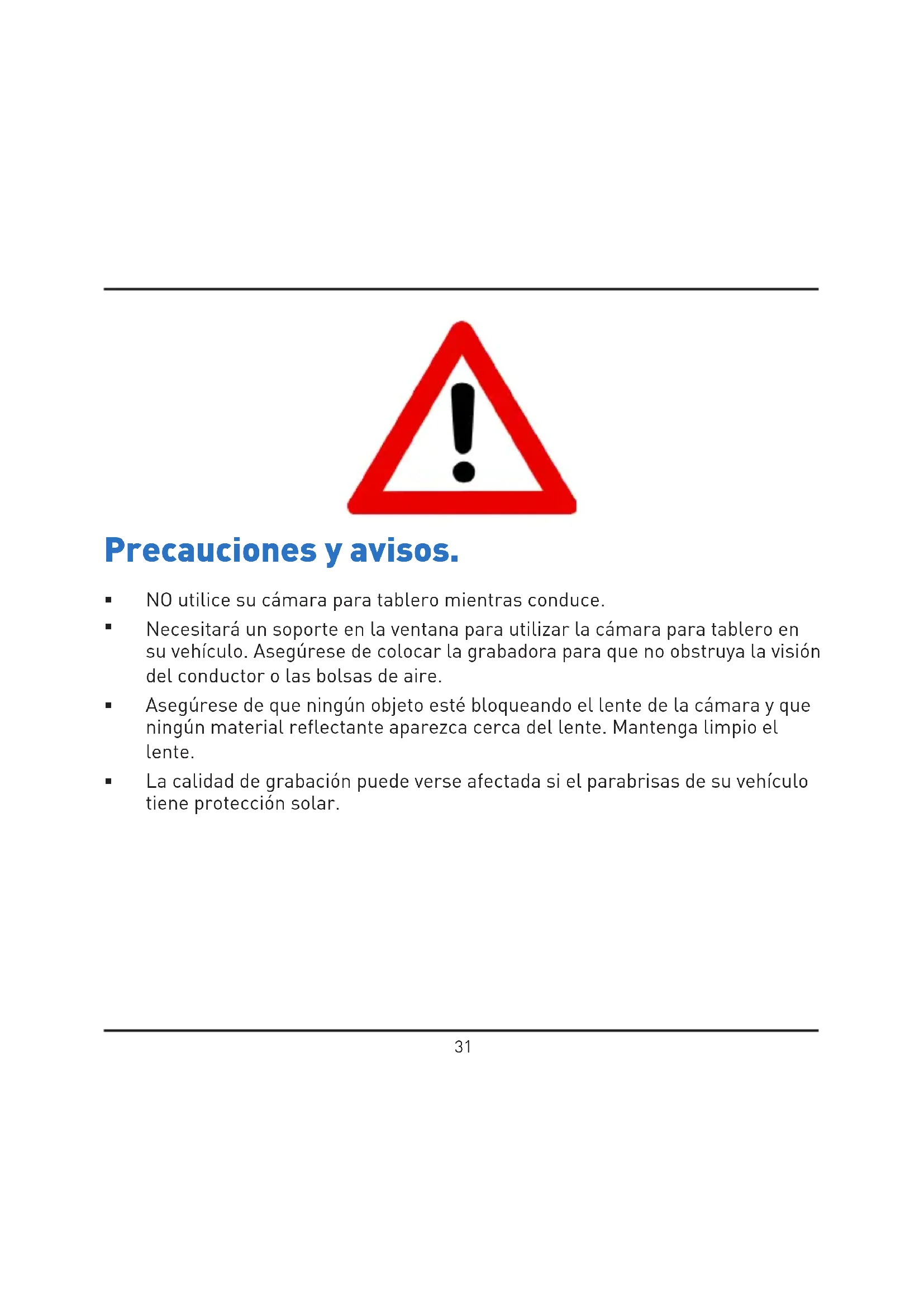 La calidad de grabación puede verse afectada si el parabrisas de su vehículo tiene protección solar.32