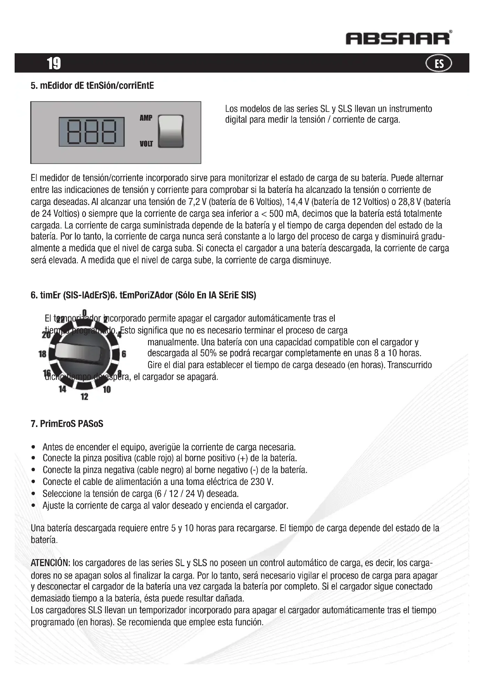 ABSLS 60 - Cargador de batería Absaar - Manual de uso y guía de instrucciones gratis