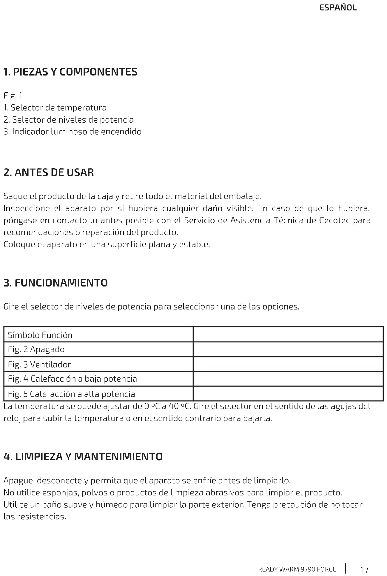 MANUAL DE USUARIO Ready Warm 9790 Force CECOTEC