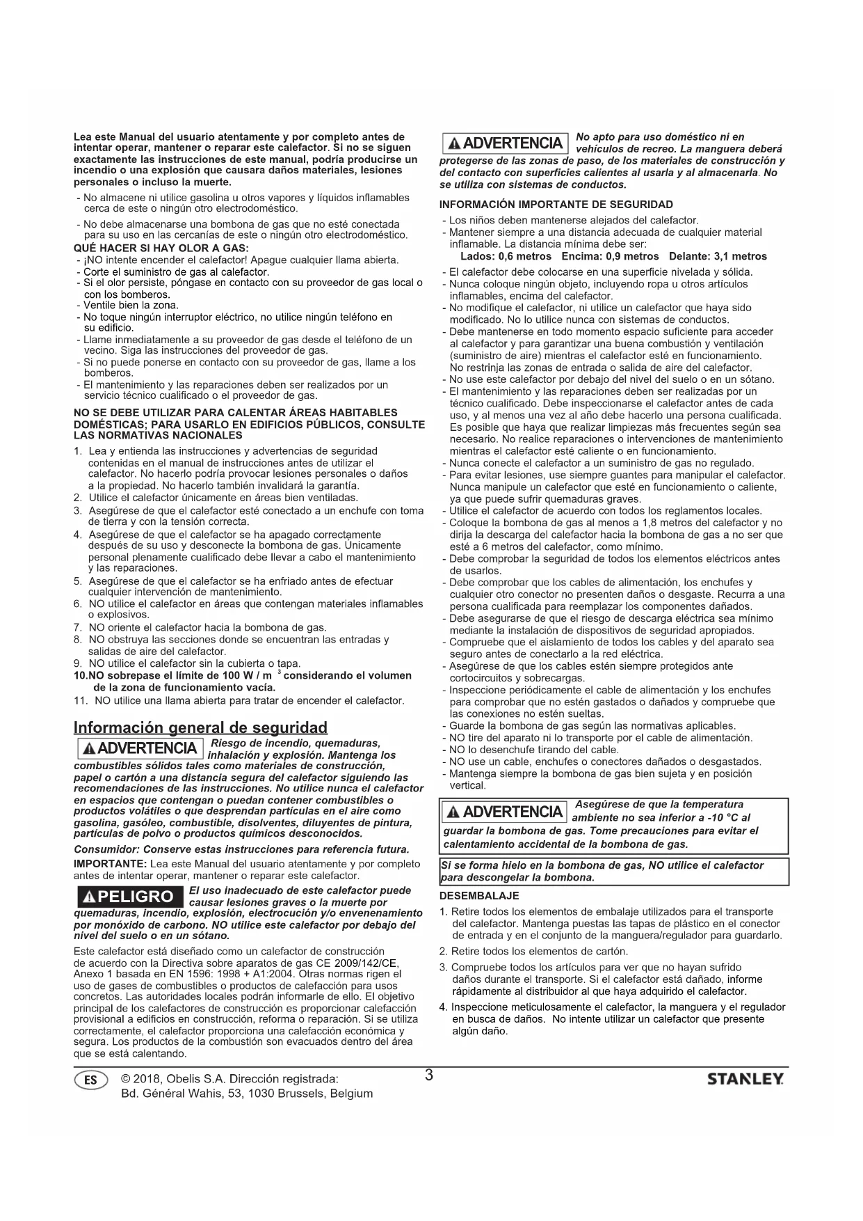 STN17G - Calefacción STANLEY - Manual de uso y guía de instrucciones gratis