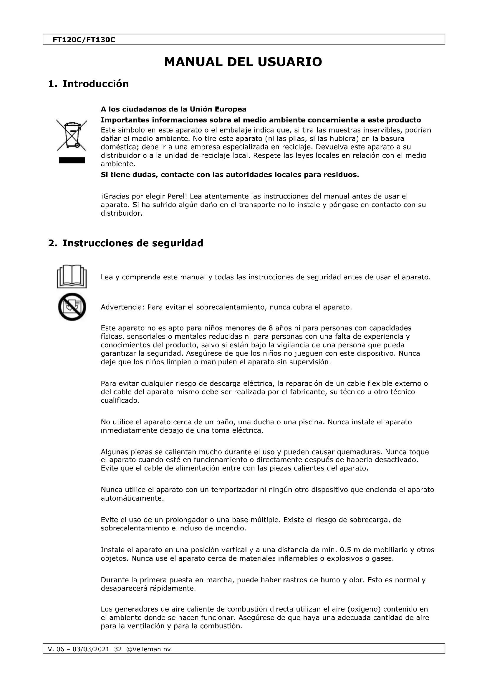 MANUAL DE USUARIO FT120C Perel