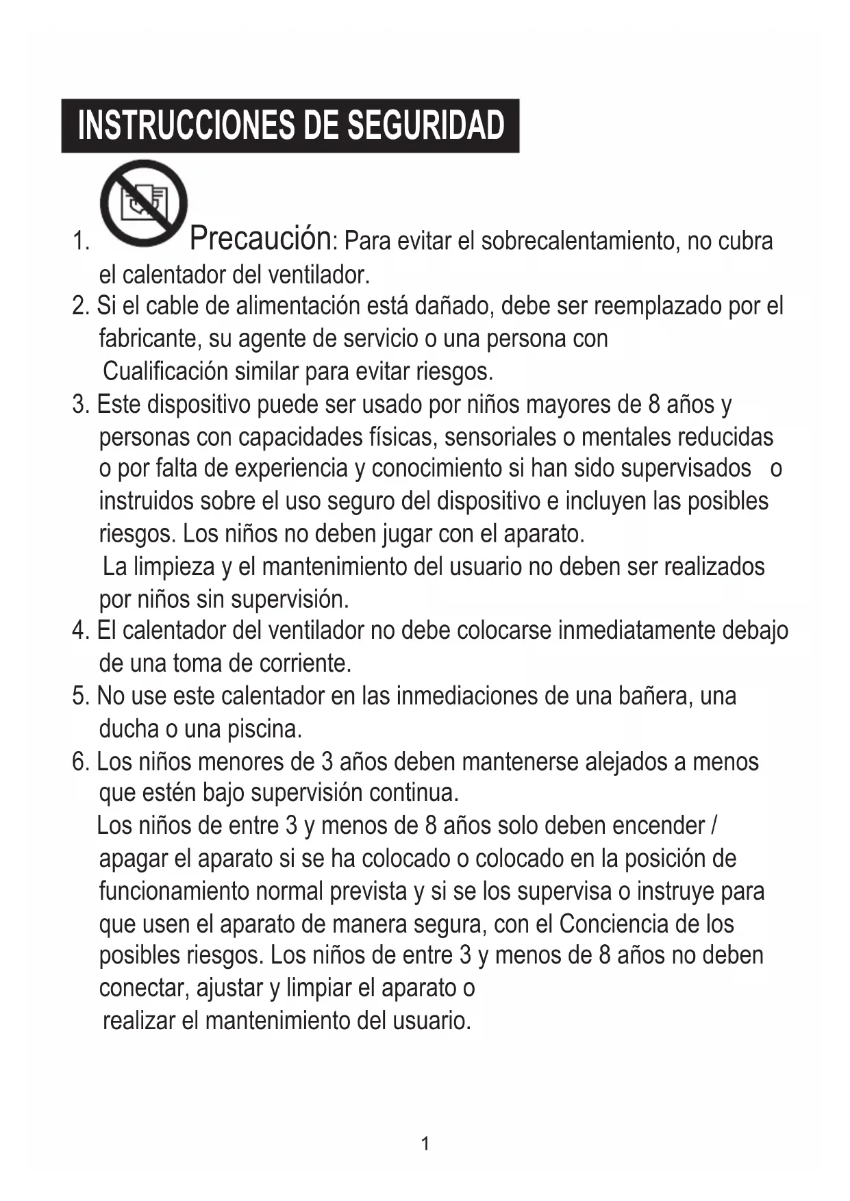 4. El calentador del ventilador no debe colocarse inmediatamente debajo