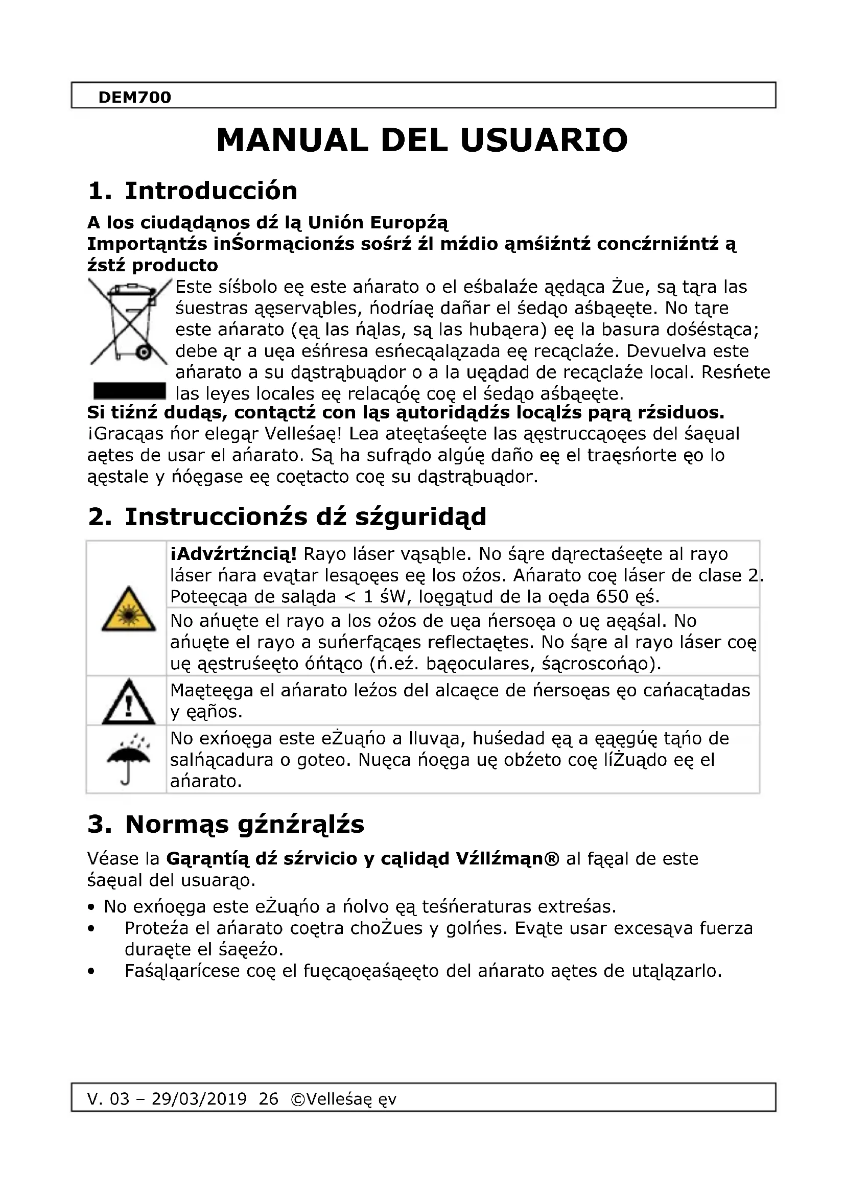 MANUAL DE USUARIO DEM700 VELLEMAN