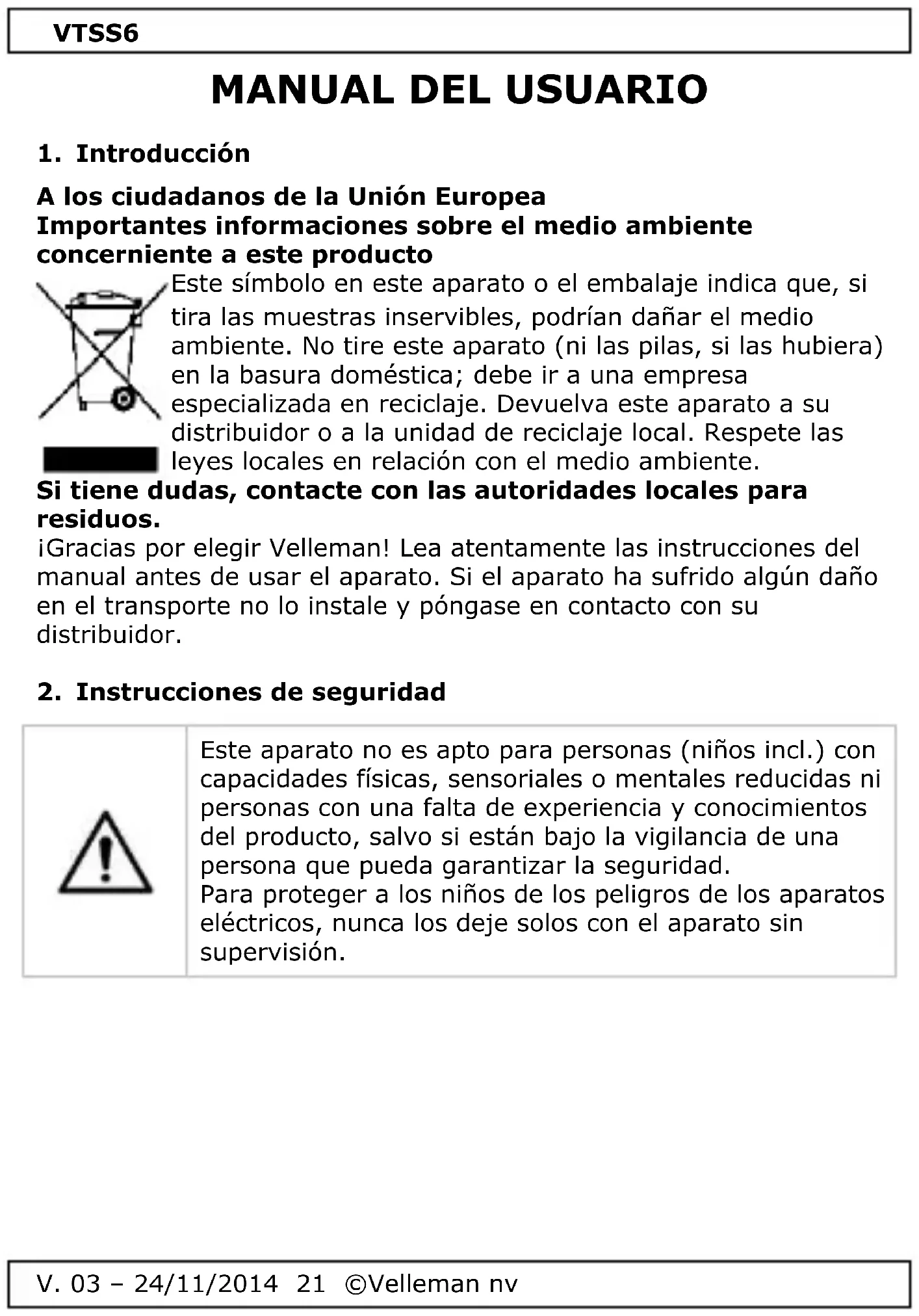 MANUAL DE USUARIO VTSS6 VELLEMAN