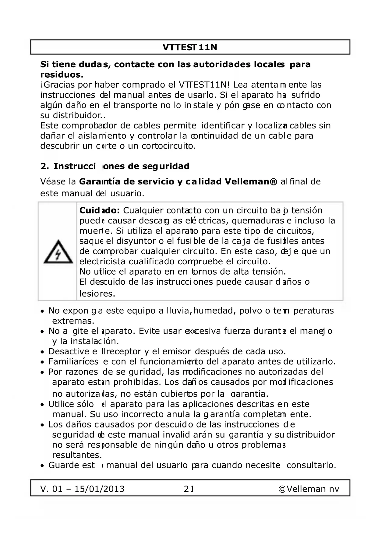 Encuentra gratis el manual del aparato VTTEST11N VELLEMAN en formato PDF.