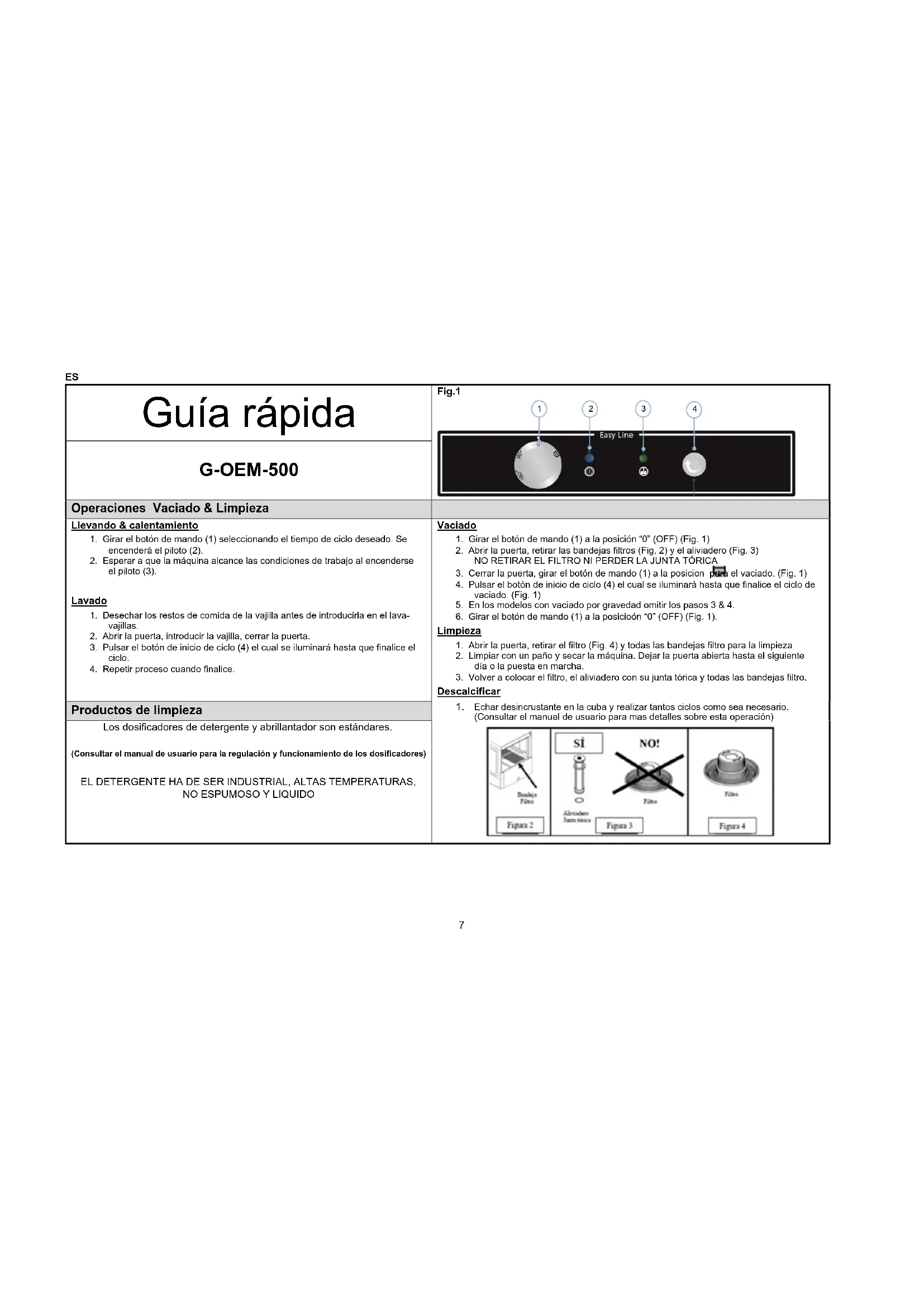 Guía rápida Fig.1 GM-OEM-500 Operaciones Vaciado & Limpieza Llevando & calentamiento