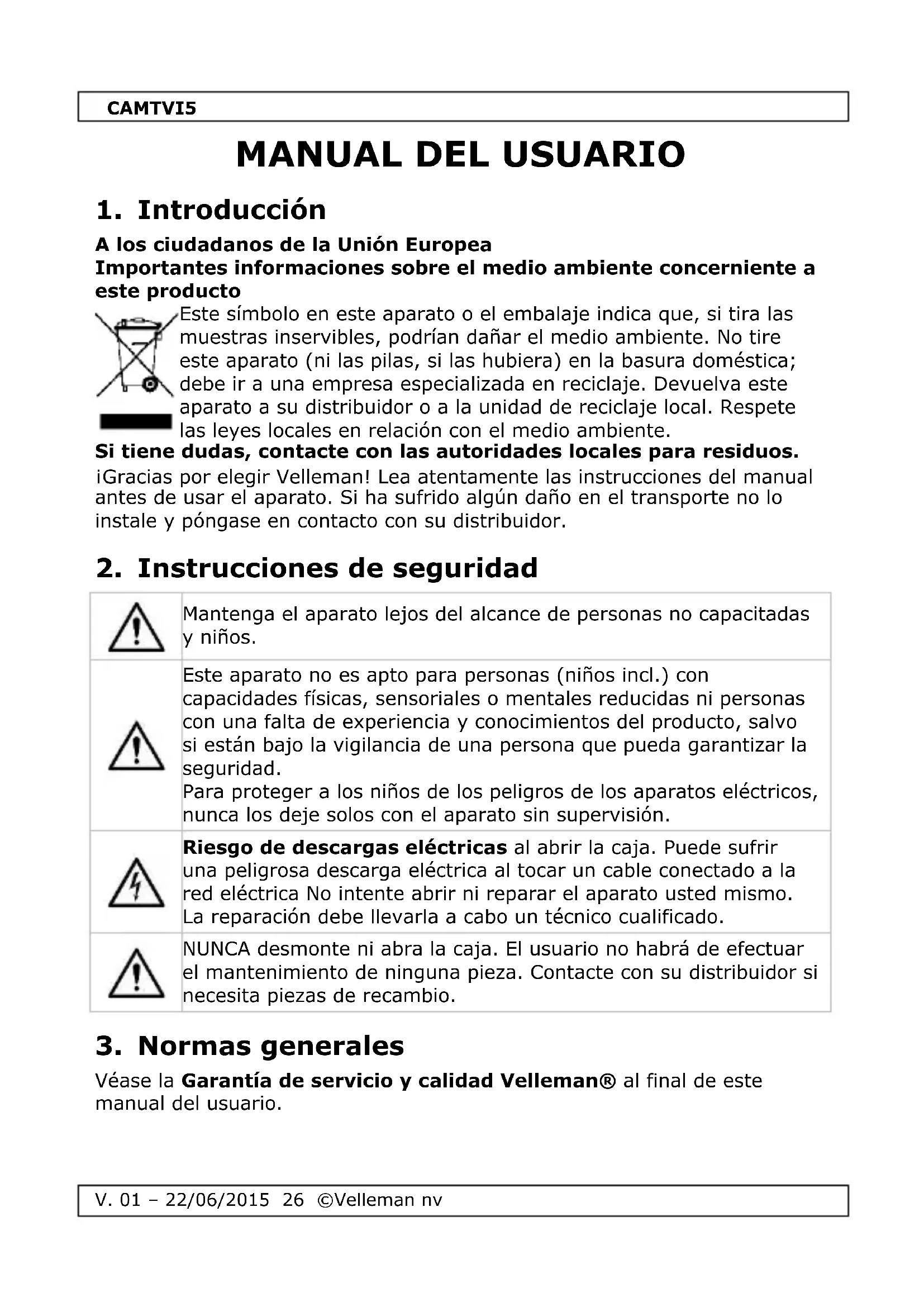 Véase la Garantía de servicio y calidad Velleman® al final de este manual del usuario.CAMTVI5