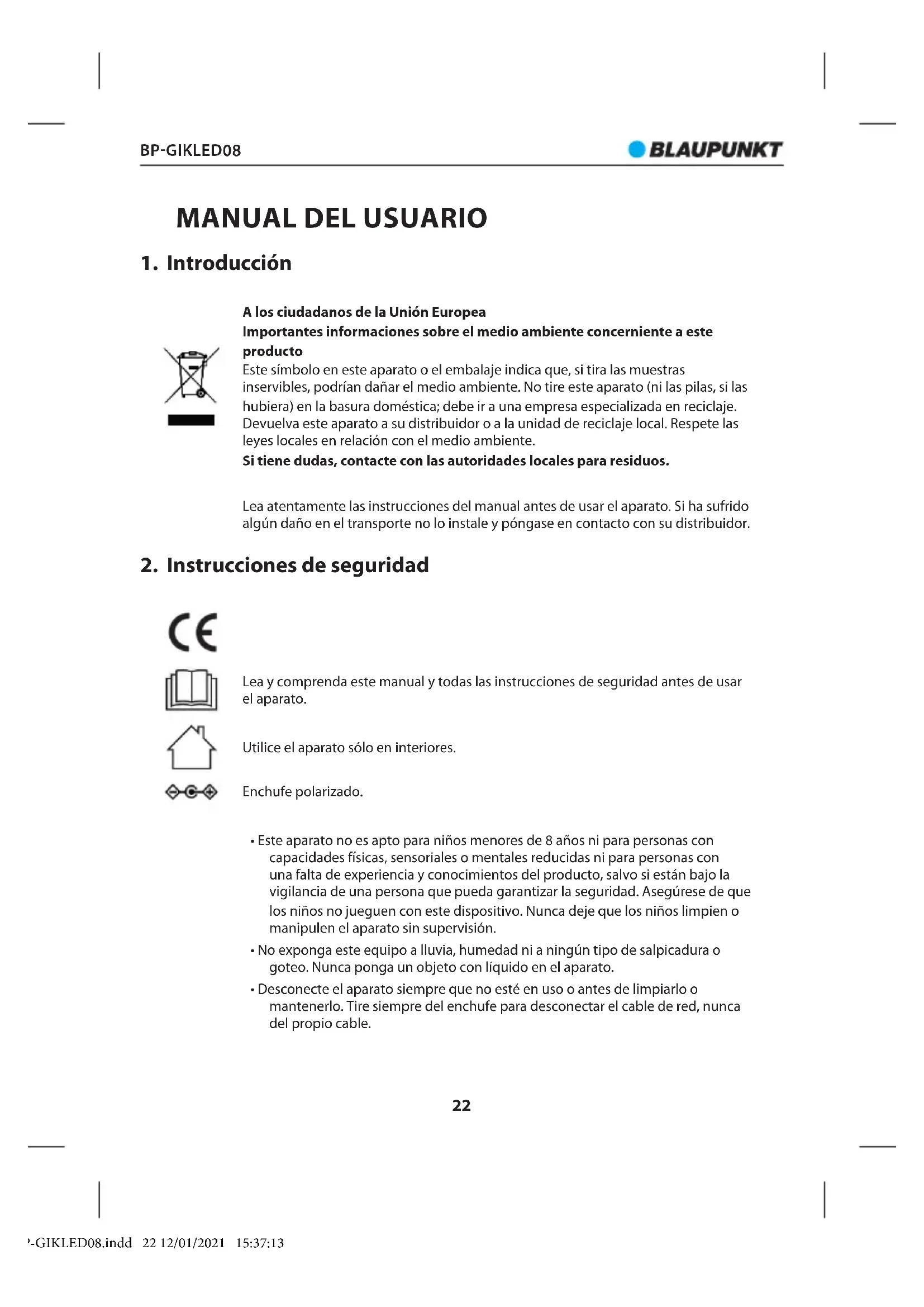 Encuentra gratis el manual del aparato BPGIKLED08 BLAUPUNKT en formato PDF.