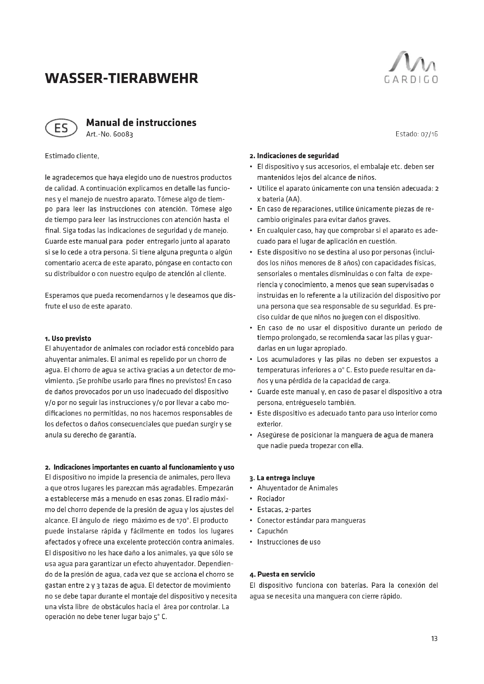 MANUAL DE USUARIO 60083 Gardigo